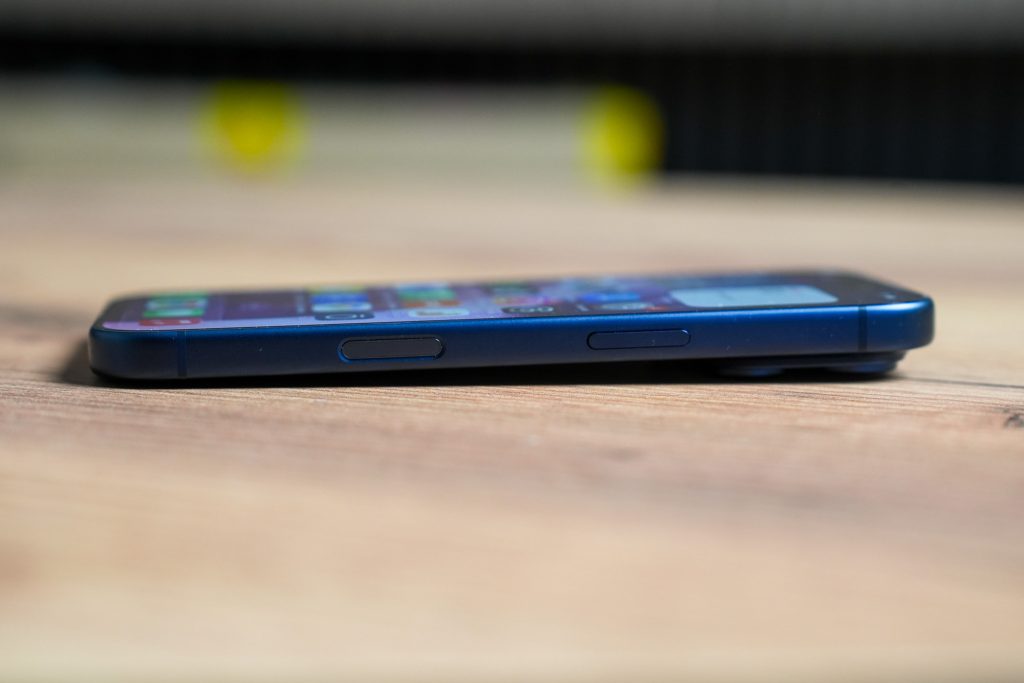 Painikkeiden sijoittelu jatkaa Applen linjaa. Virtapainike löytyy oikealta kyljeltä, jonka yhteydessä on myös kameran hallintaan tarkoitettu Camera Control -painike. Vasemmalla puolella sijaitsevat äänenvoimakkuuspainikkeet, Toimintapainike sekä SIM-korttiluukku. Alareunasta löytyvät USB-C-liitin, kaiutin ja mikrofoni, kun taas yläreuna on jätetty täysin tyhjäksi.