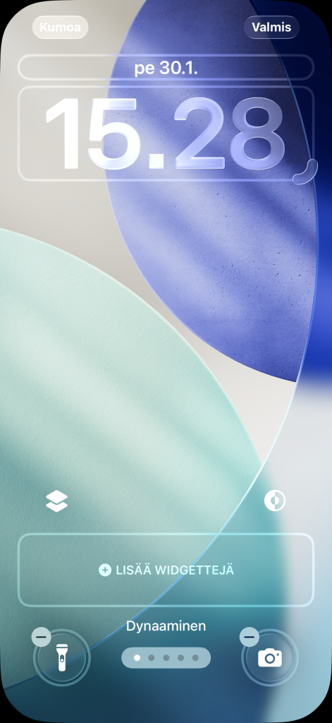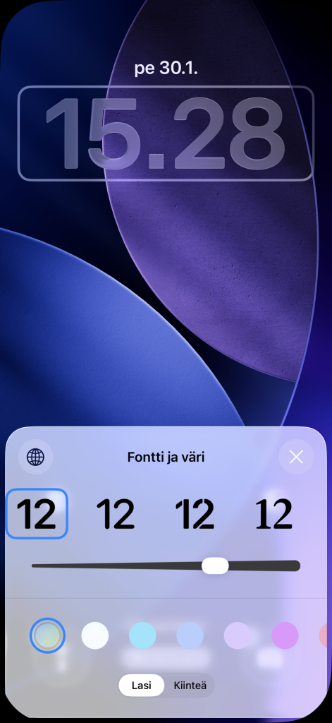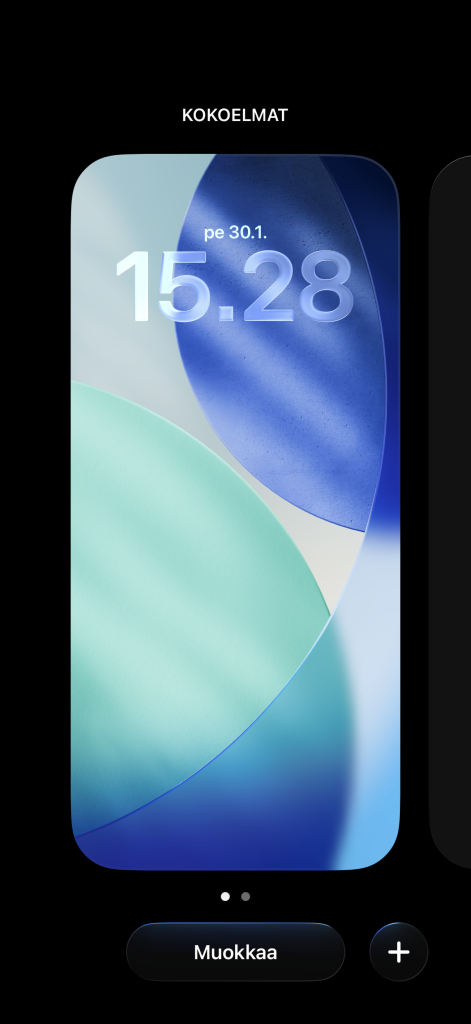Lukitusnäyttö on saanut iOS 26:ssa lisää muokattavuutta. Kellon kokoa voi säätää aiempaa vapaammin, ja se mukautuu taustakuvan pääkohteeseen sekä ilmoitusten määrään. Mukana ovat myös uudet tilalliset taustakuvat, jotka luovat kevyen kolmiulotteisen vaikutelman puhelinta liikutettaessa.