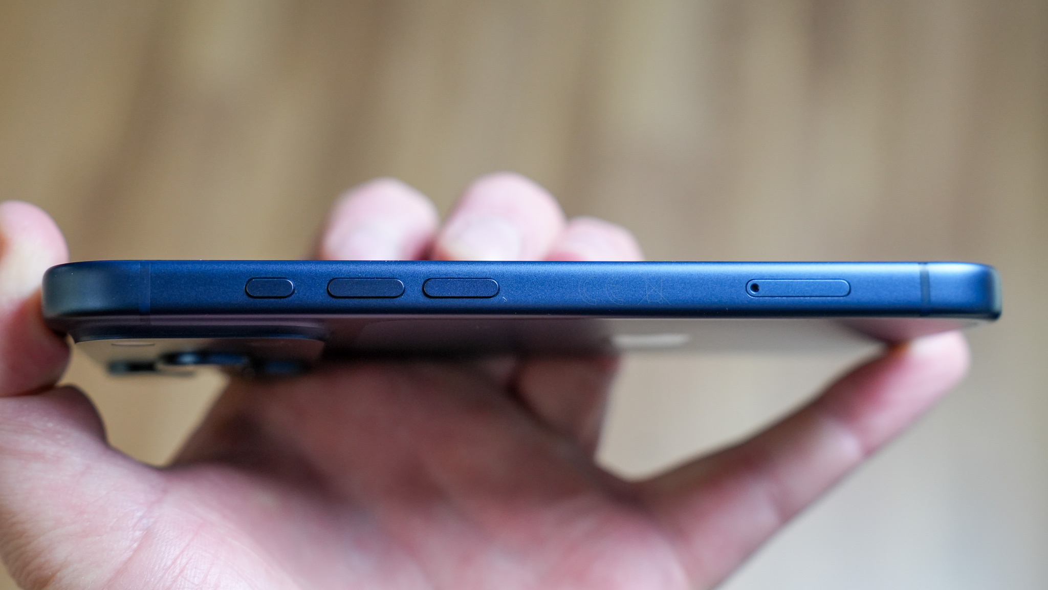 Painikkeiden sijoittelu jatkaa Applen linjaa. Virtapainike löytyy oikealta kyljeltä, jonka yhteydessä on myös kameran hallintaan tarkoitettu Camera Control -painike. Vasemmalla puolella sijaitsevat äänenvoimakkuuspainikkeet, Toimintapainike sekä SIM-korttiluukku. Alareunasta löytyvät USB-C-liitin, kaiutin ja mikrofoni, kun taas yläreuna on jätetty täysin tyhjäksi.