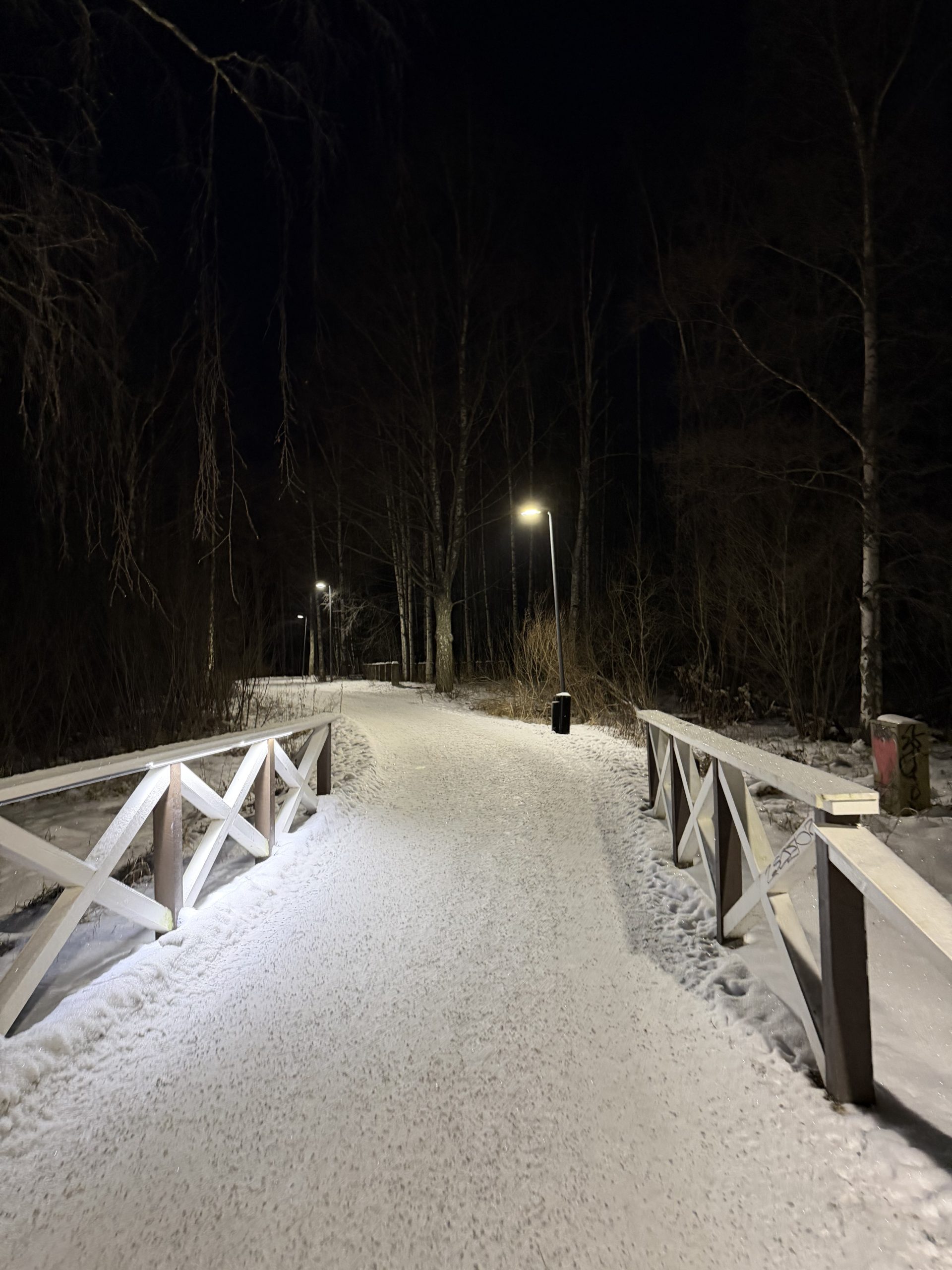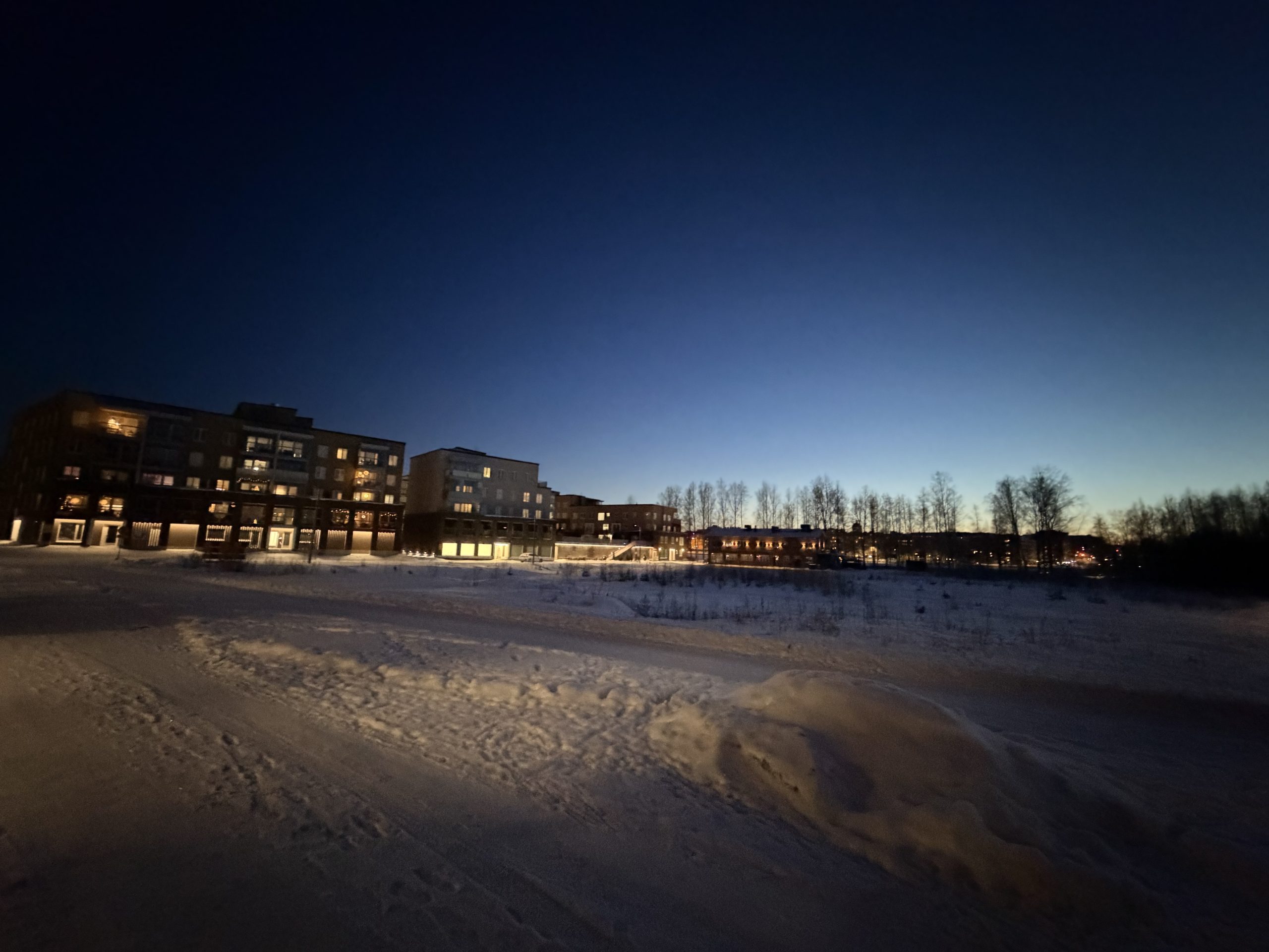 Hämärässä iPhone 17 Pro toimii erinomaisesti. Automaattinen yötila aktivoituu selvästi harvemmin kuin iPhone Airissa, mikä mahdollistaa 24 megapikselin kuvaamisen myös heikommassa valaistuksessa. Täydessä pimeydessä yötila on edelleen tarpeen, mutta useimmissa iltakuvaustilanteissa kamera pärjää ilman sitä. Kuvissa on hieman rakeisuutta varjoalueilla, mutta yksityiskohdat säilyvät hyvin, dynamiikka on laaja ja värintoisto pysyy luotettavana.