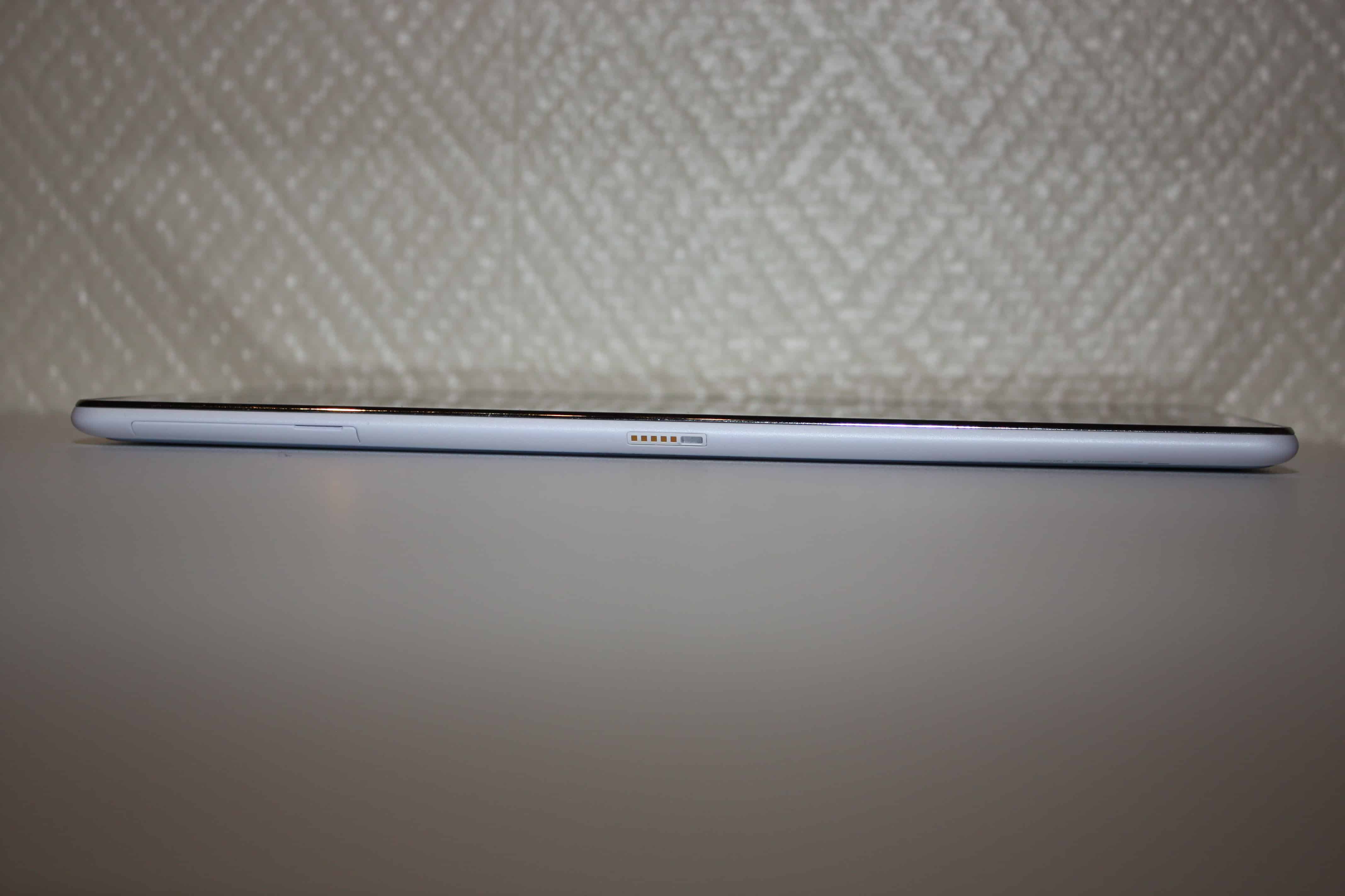 Laitteelta löytyy painoa 500 grammaa ja sen mitat ovat 25,16 x 17,2 x 0,79 senttimetriä. Laite on siis varsin kookas ja painava, mutta jos tablettia käyttää pöydällä ei ole mitään ongelmaa, kun ei tarvitse kanniskella laitetta.
