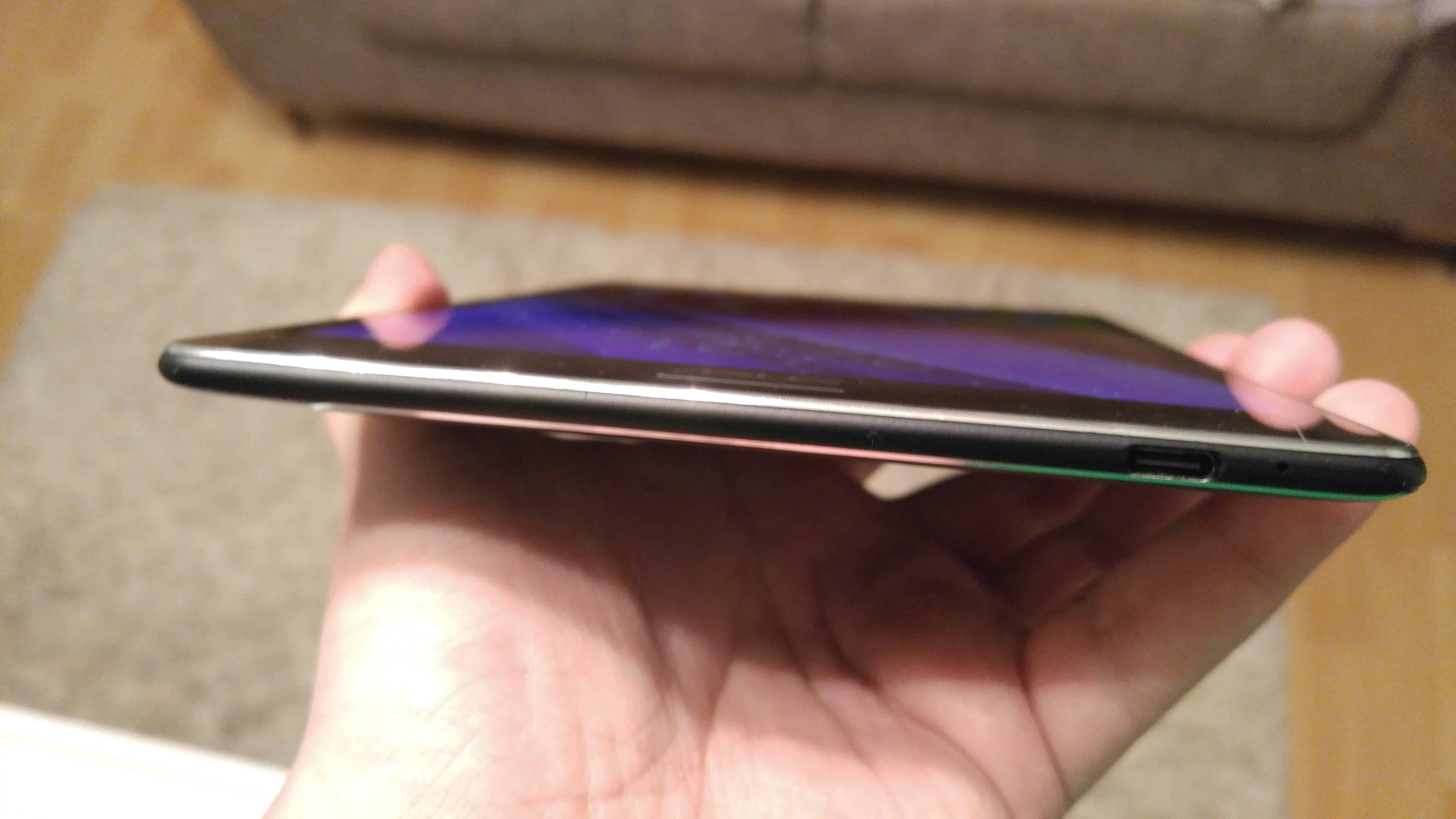 Painoa tabletilla on vain 298g ja se on vain 6.6mm paksu. Tabletin ollessa näinkin ohut on pakko ihmetellä, miten hyvin se istuu käsiin. Yhdellä kädellä tablettia on mahdoton käyttää, mutta siihen sitä ei ole tarkoitettukaan. Takaosan yläreunassa on 8MP kamera, joka tulee takakuoresta hieman ulos, mutta ei mitenkään kauhean pahasti. Etuosaa komistaa 8-tuuman näyttä ja tupla stereo kaiuttimet. Näytön alaosassa on myös ASUS-logo. Oikealla puolella tablettia ovat äänenvoimakkuuden säädin ja ON/OFF näppäin. Molemmat näppäimet tuntuivat painettaessa hyviltä, ei ehkä täydellisiltä, mutta ajavat oman asiansa loistavasti. Näytön vasemmalla puolella ei ole mitään.