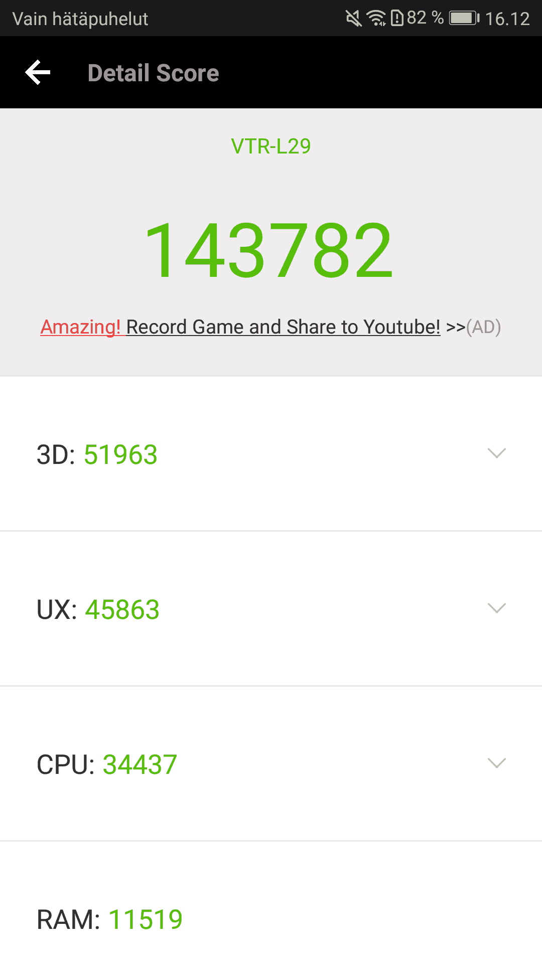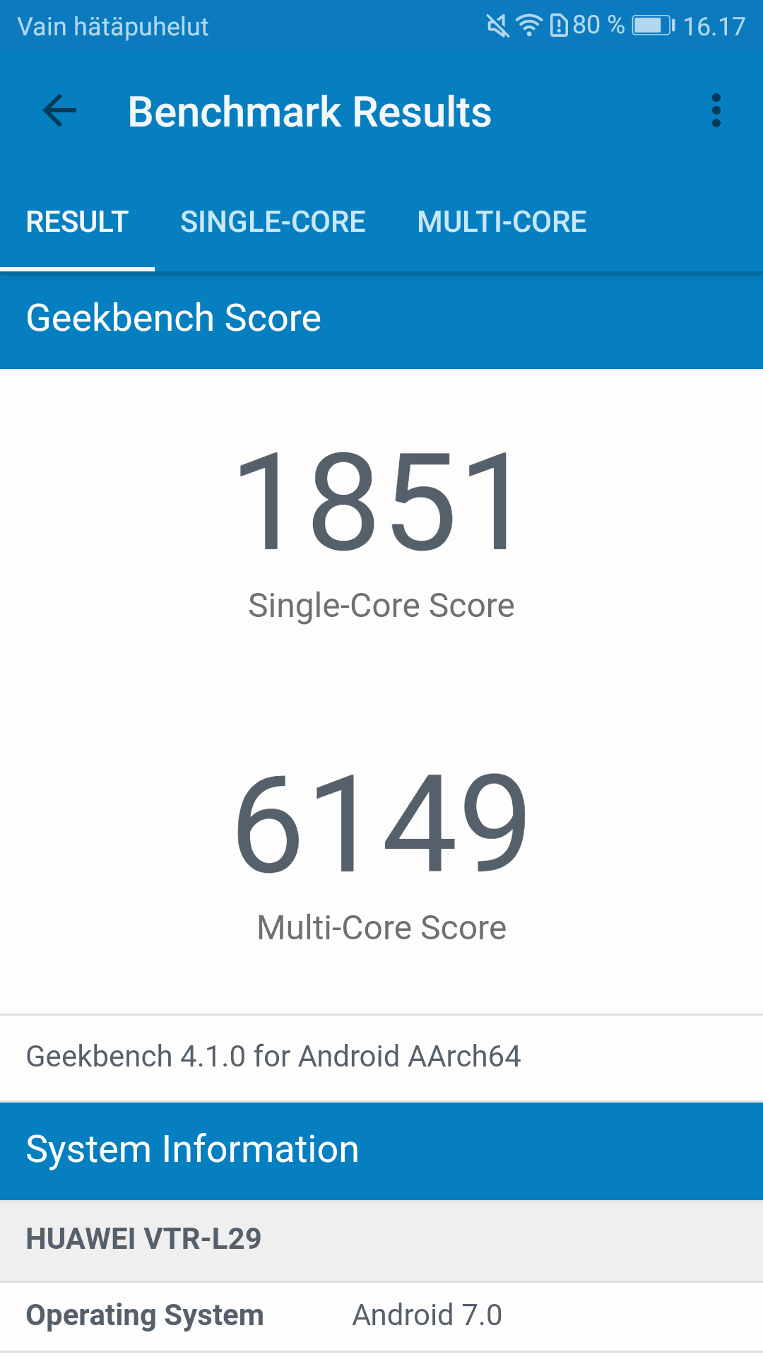 Huawei P10 ei siis kompastu ainakaan suorituskyvyn puutteeseen, sillä Kirin 960 on eri mittauksissa yksi markkinoiden kyvykkäimmistä järjestelmäpiireistä. Päivittäisessä aktiivisessa käytössä minulla ei tullut vastaan suorituskykyyn viittaavia ongelmia. Puhelin selviytyi hienosti raskaampiakin pelejä pelatessa, enkä huomannut mitään ongelmia.