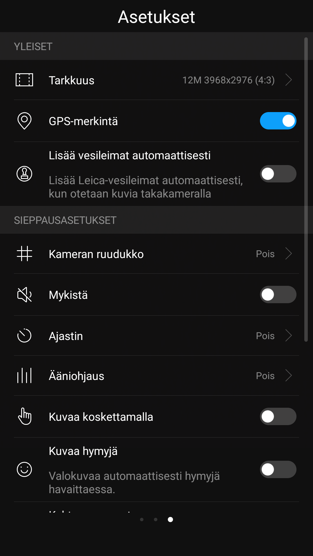 Toinen mainittava kuvaustila kamerassa on mielestäni varsin laaja pro-tila, jossa on mahdollista säätää itse ISO-arvoa, sulkimen nopeutta, valotuksen korjausta, tarkennusta sekä valkotasapainoa. Huawei antaa puhelimensa kameralle siis varsin laajat säätömahdollisuudet, joista on varmasti hyötyä ainakin valokuvausta harrastaville ihmisille. Erityisen positiivista on myös, että pro-tila on vain yhden pyyhkäisyn ulottuvilla, eikä asetuksia joudu säätämään monen mutkan kautta.