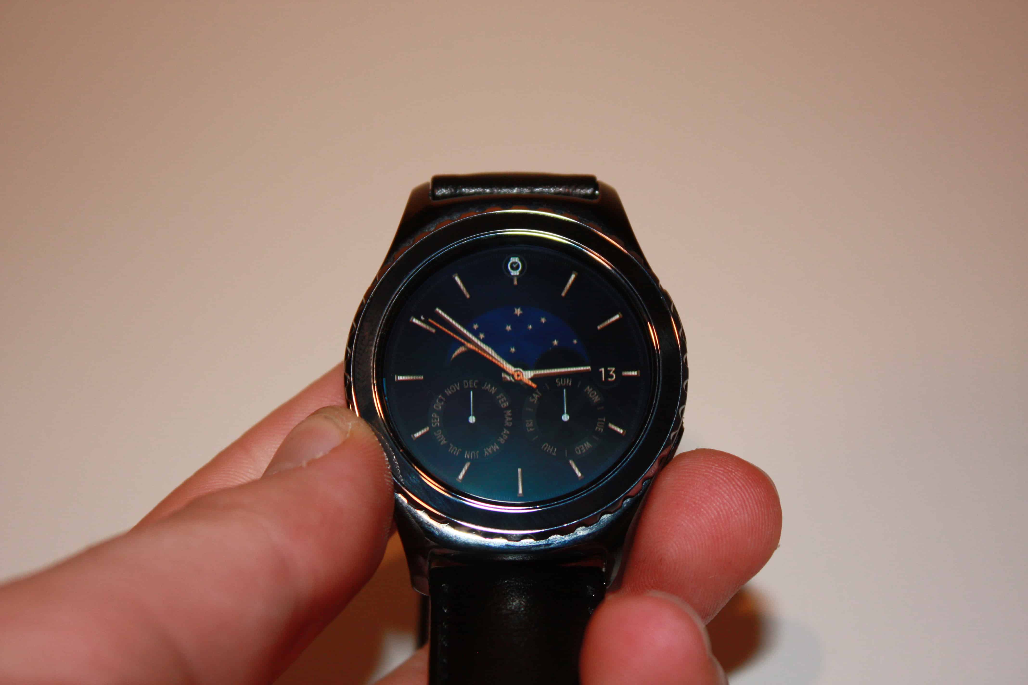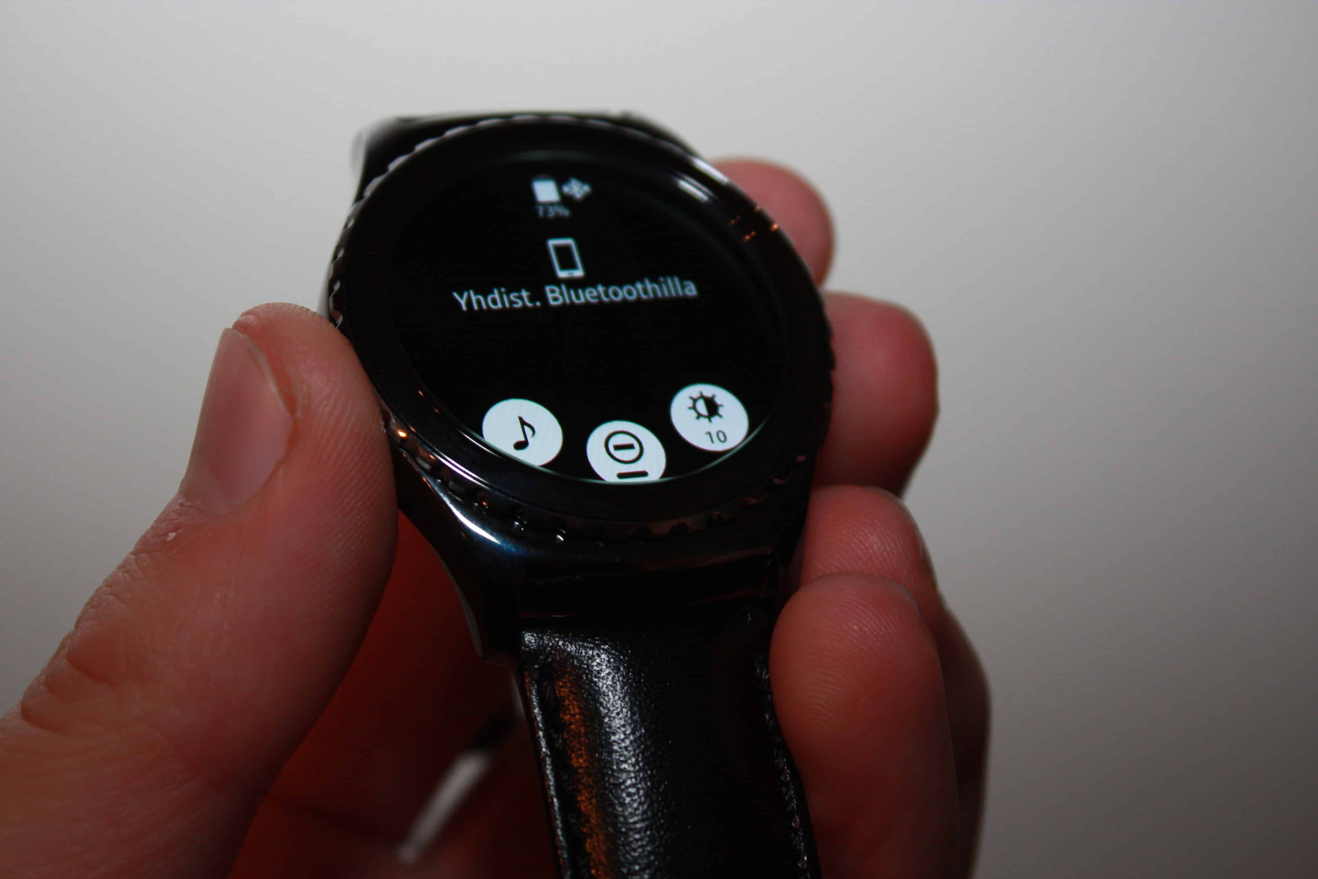Gear S2:n näyttö on hieman pienempi kuin Huawei Watchin. Gear S2 näyttö on kooltaan 1.2-tuumaa, kun taas Huawei Watchin näyttö on suuruudeltaan 1.4-tuumaa. Molempien kellojen näytöntarkkuus on mielestäni täysin riittävällä tasolla, vaikka pikseleitäkin on helppo vielä havaita. Itse en kuitenkaan koe, että yli 400×400 pikselin näytöille olisi tarvetta tämän kaltaisissa pienissä laitteissa, sillä pikselitiheys on hyvin lähellä 300 pikseliä tuumaa kohden.