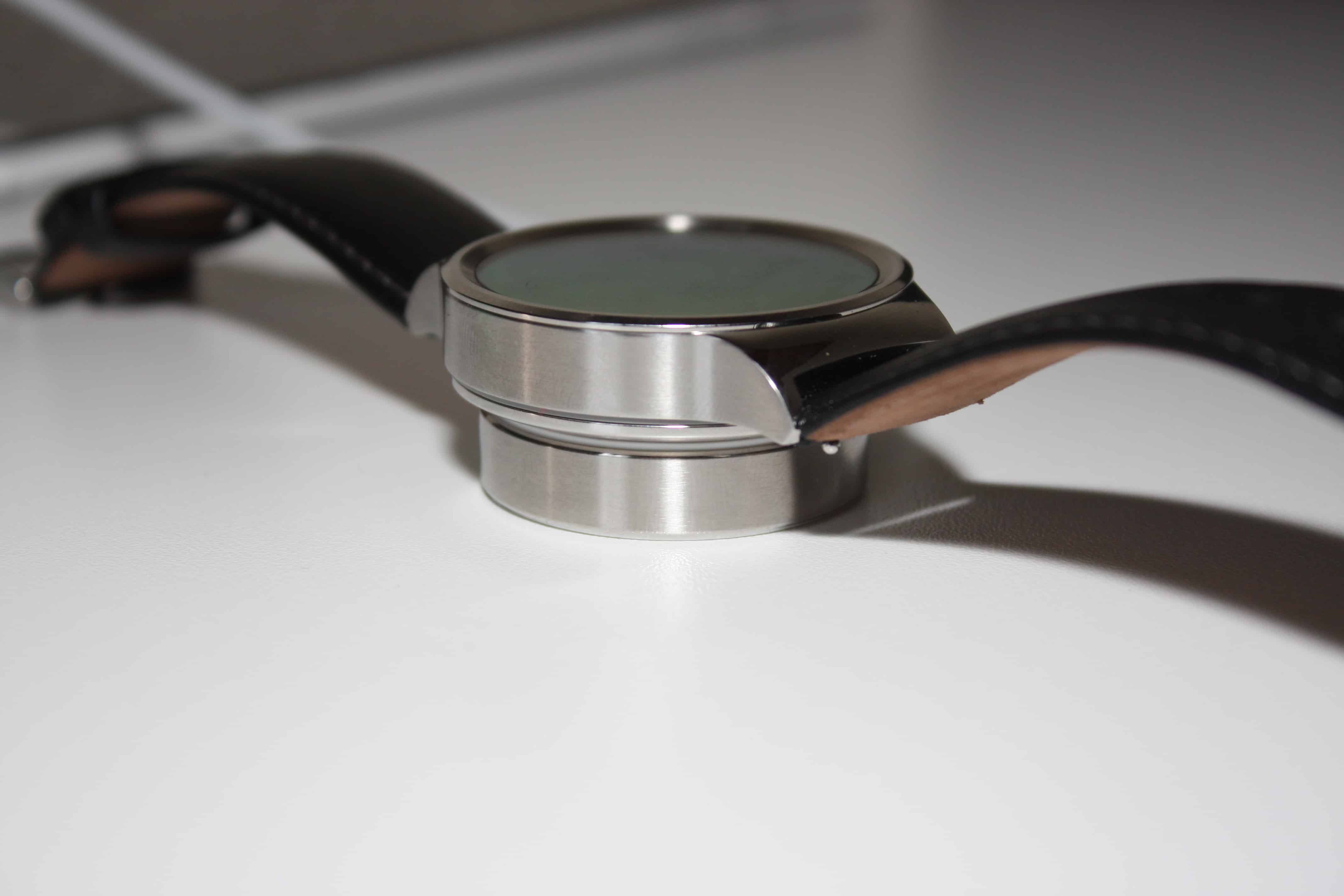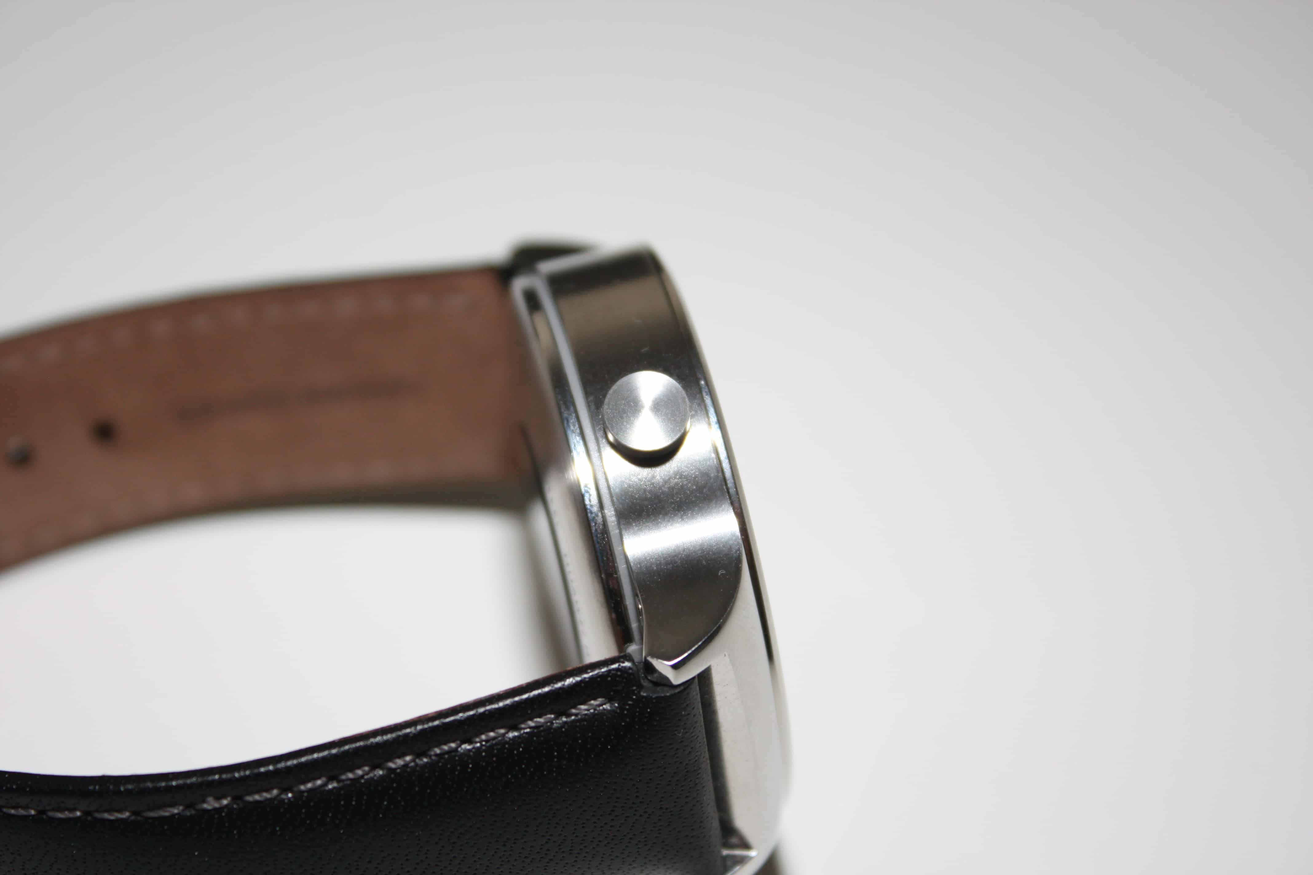 Huawei Watchista löytyy vain yksi nappula, joka on sijoitettuna luonnollisesti kello kahden kohdalle. Nappulalla ei juuri ole mitään muuta käyttöä, muuta kuin sillä pääsee aina takaisin kotinäkymään, eli kellotauluun.