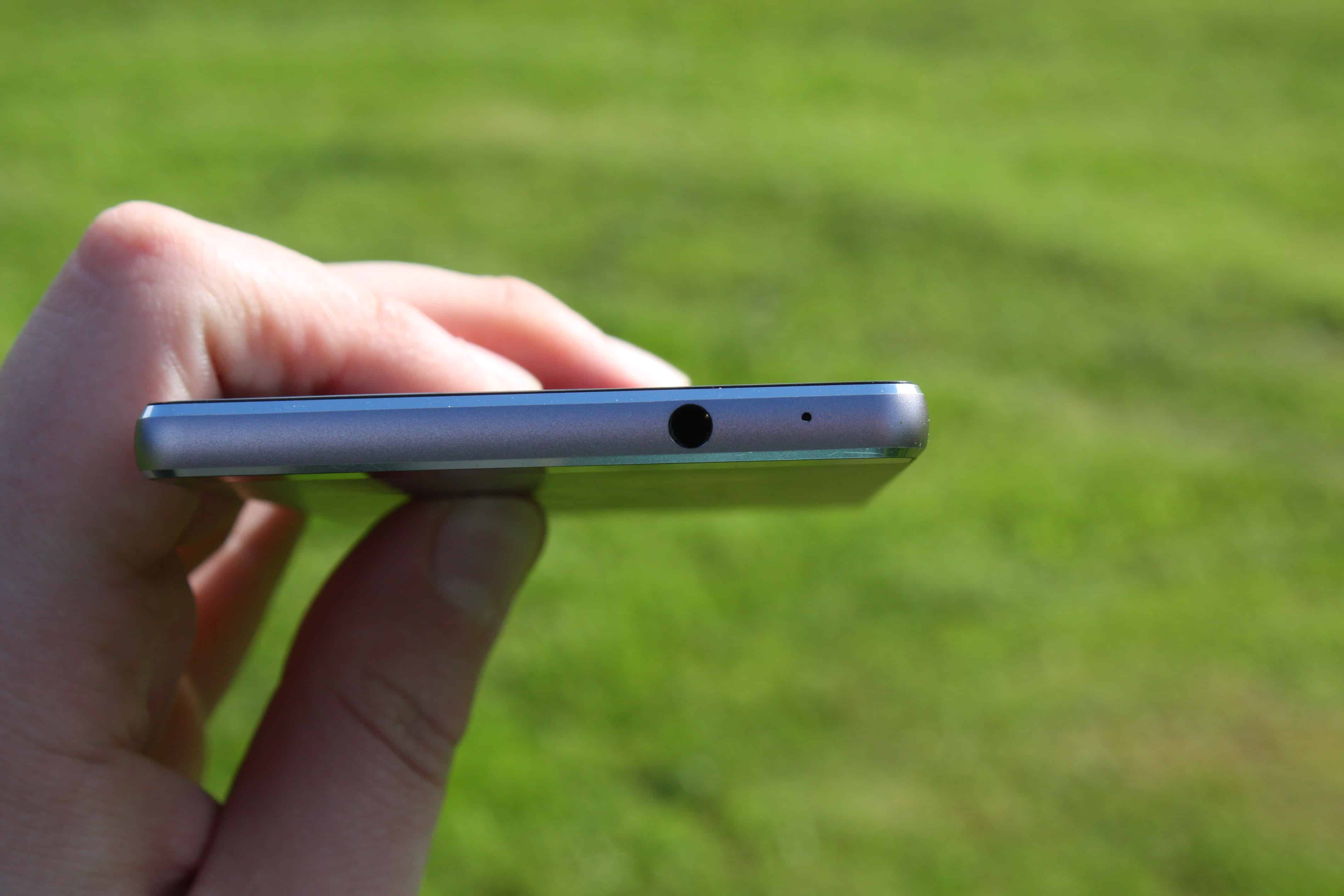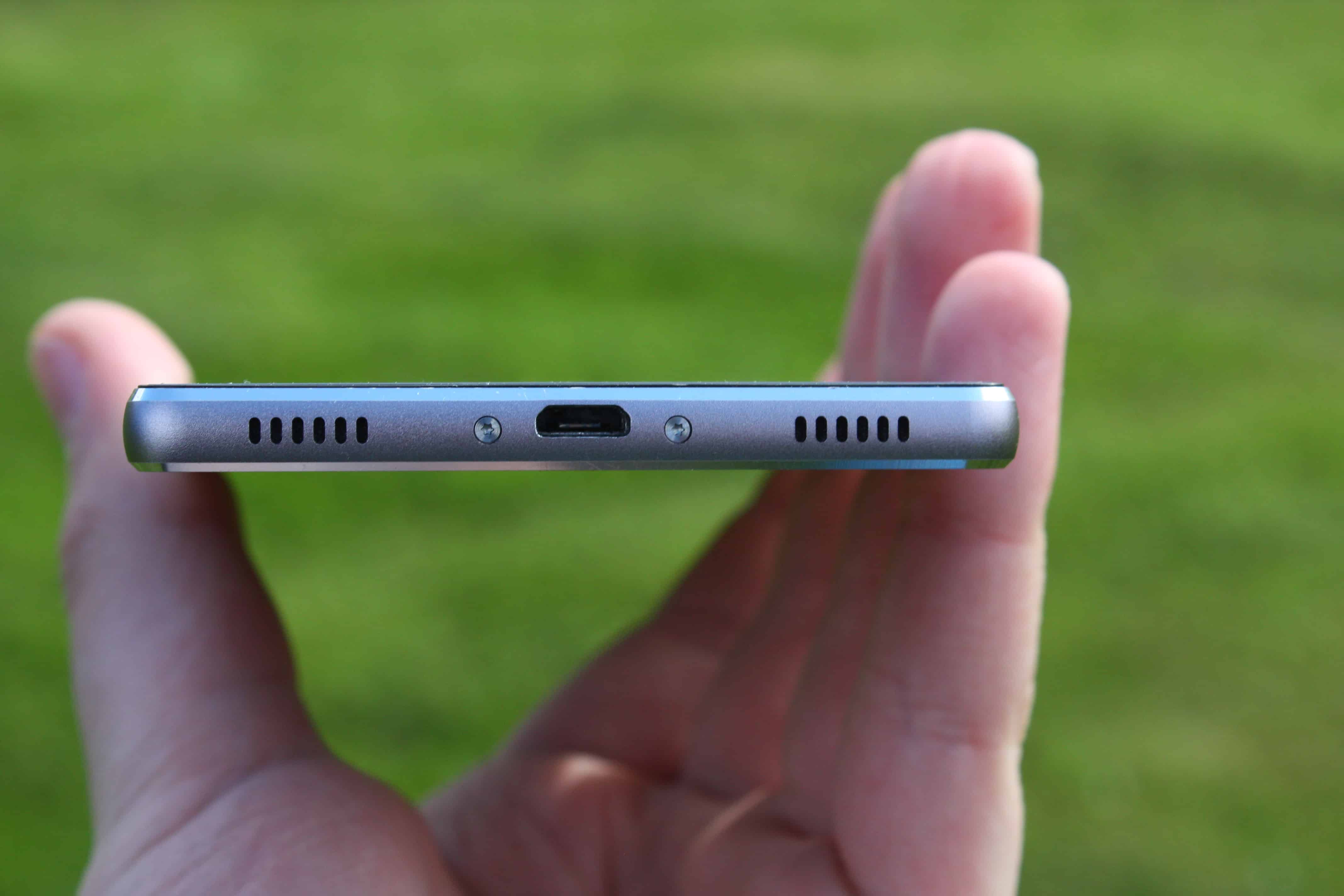Laitteen yläreunasta löytyy kuulokeliitin. Alareunaan on sijoitettuna USB-latausliitin, sekä kaiutin. Mielenkiintoiseksi Huawei on tehnyt alareunan kaiutin sijoitukset, sillä USB-latausliittimen kummaltakin puolelta löytyy kyllä ”kaiutinreijät”, mutta toiseen niistä on vain sijoitettu kaiutin.
