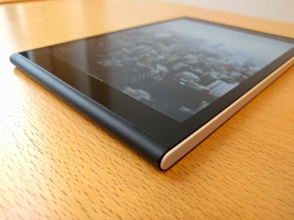 Laatutuntumaltaan Jolla tabletti on kohtalainen. Sitä ei missään nimessä voi verrata Applen iPadiin tai muihinkaan huippuluokan tabletteihin. Tämän sanoneen, jo hinnaltaankin täysin eri sarjassa painiva Jolla tabletti on hintaansa nähden todellakin huippuluokkaa. Käytössämme oleva tabletti ei ole vielä viimeisin versio tabletista, joten siitä löytyy muutamia epäkohtia, joista itse en kauheasti tykännyt. Esimerkiksi muovipaneeli, mikä kiertyy tabletin ympärille ei ole täysin samassa tasossa näytön kanssa, joten näytön ylä- ja alapuoli ovat hieman alempana, kuin muovipaneeli. Jolla tabletti istuu kuitenkin käteen erittäin hyvin ja tuntuu laadukkaalta.