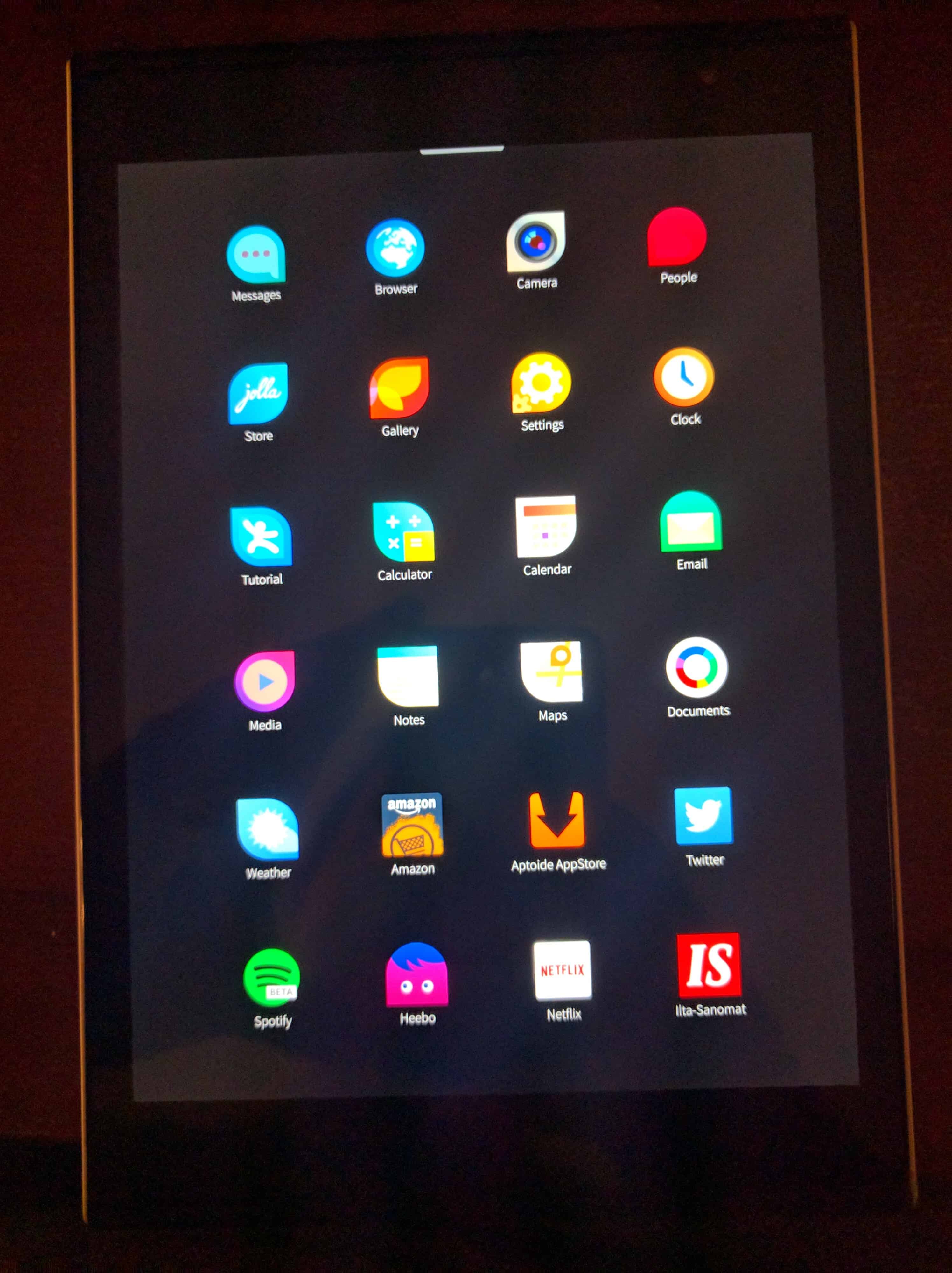 Käyttöjärjestelmänä toimii Jollan kehittämä Sailfish OS. Tabletissa on valmiiksi asennettuna Sailfish 2.0. Jollan Sailfish käyttöjärjestelmässä toimii, niin Sailfish- kuin Android sovellukset. Valitettavasti Google Play kauppaa ei tabletti tue(pienellä koodaamisella, senkin toki saa asennettua). Käytössäsi on siis valtava määrä sovelluksia, jokseenkin natiiveja Sailfish sovelluksia on vielä omasta mielestä aivan liian vähän. Jos jotain sovellusta ei löydy suoraan Jolla kaupasta, niin siihen löytyy Android sovellus Aptoide kaupasta(missä on muuten tabletille optimoituja sovelluksia). Sailfish on kuin luotu tabletti-käyttöön ja se myös näkyy päivittäisessä käytössä. Jokainen swaippaus tuntuu oikealta, ja herääkin kysymys, miksi ei kaikki tabletti valmistajat käytä swaippauksia. Toki monet valmistajat ovatkin ruvenneet niitä käyttämään, mutta ei missään nimessä yhtä paljon, kuin Jolla käyttää Sailfishissä.