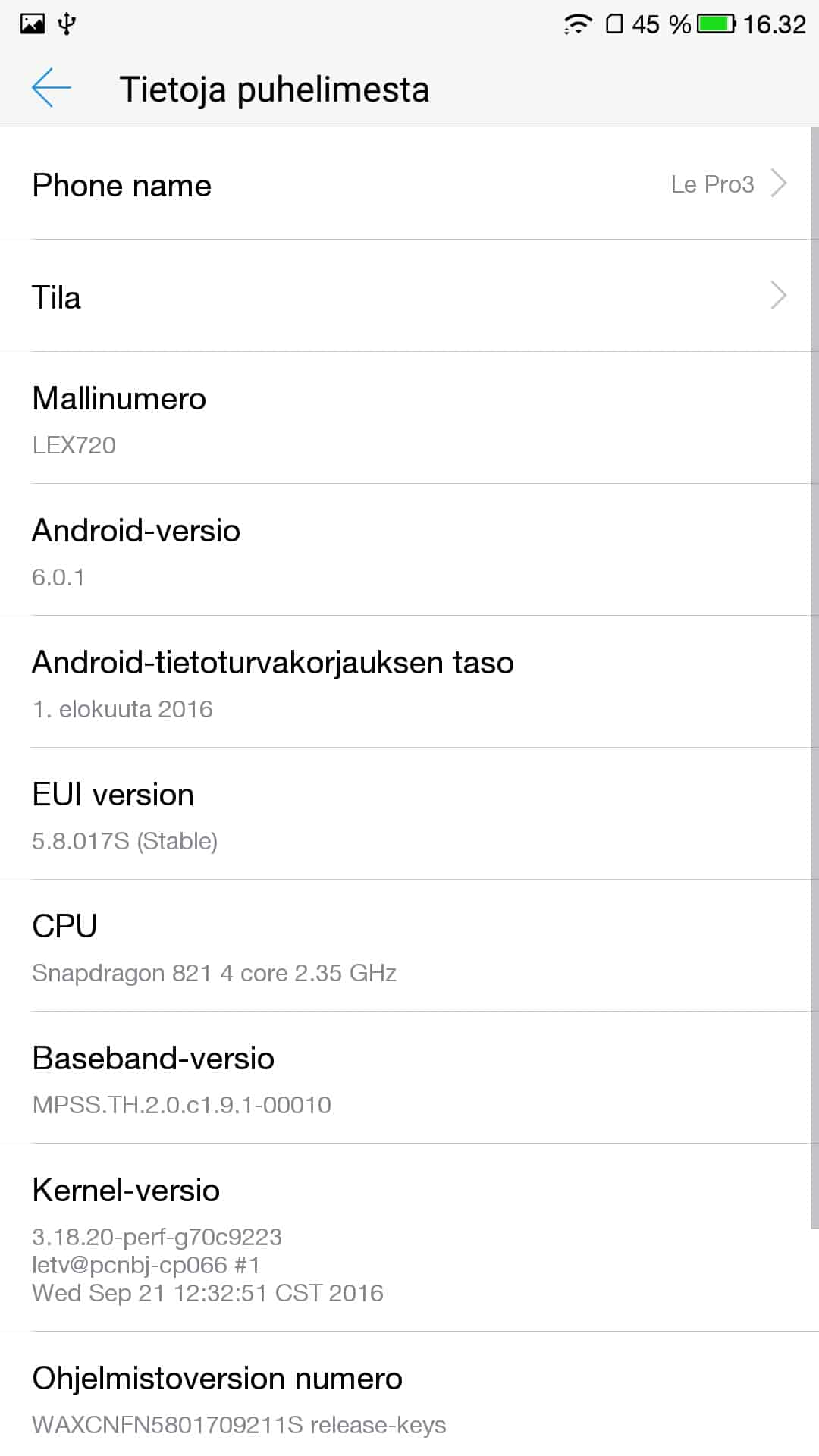 Tärkeintä mielestäni kuitenkin on, että LeEcon EUI toimii puhelimessa ilman ongelmia ja hidasteluja. Testijakson aikana en huomannut mitään ongelmia käyttöliittymän kanssa. Siinä missä kiinalaisen Xiaomin MIUI -käyttöliittymästä ei löytynyt suomen kieltä, niin EUI:sta se löytyy, ainakin osittain. Valitettavasti käännös ei kuitenkaan ole täydellinen ja monet asetukset ja sovellukset ovat edelleen englanniksi.