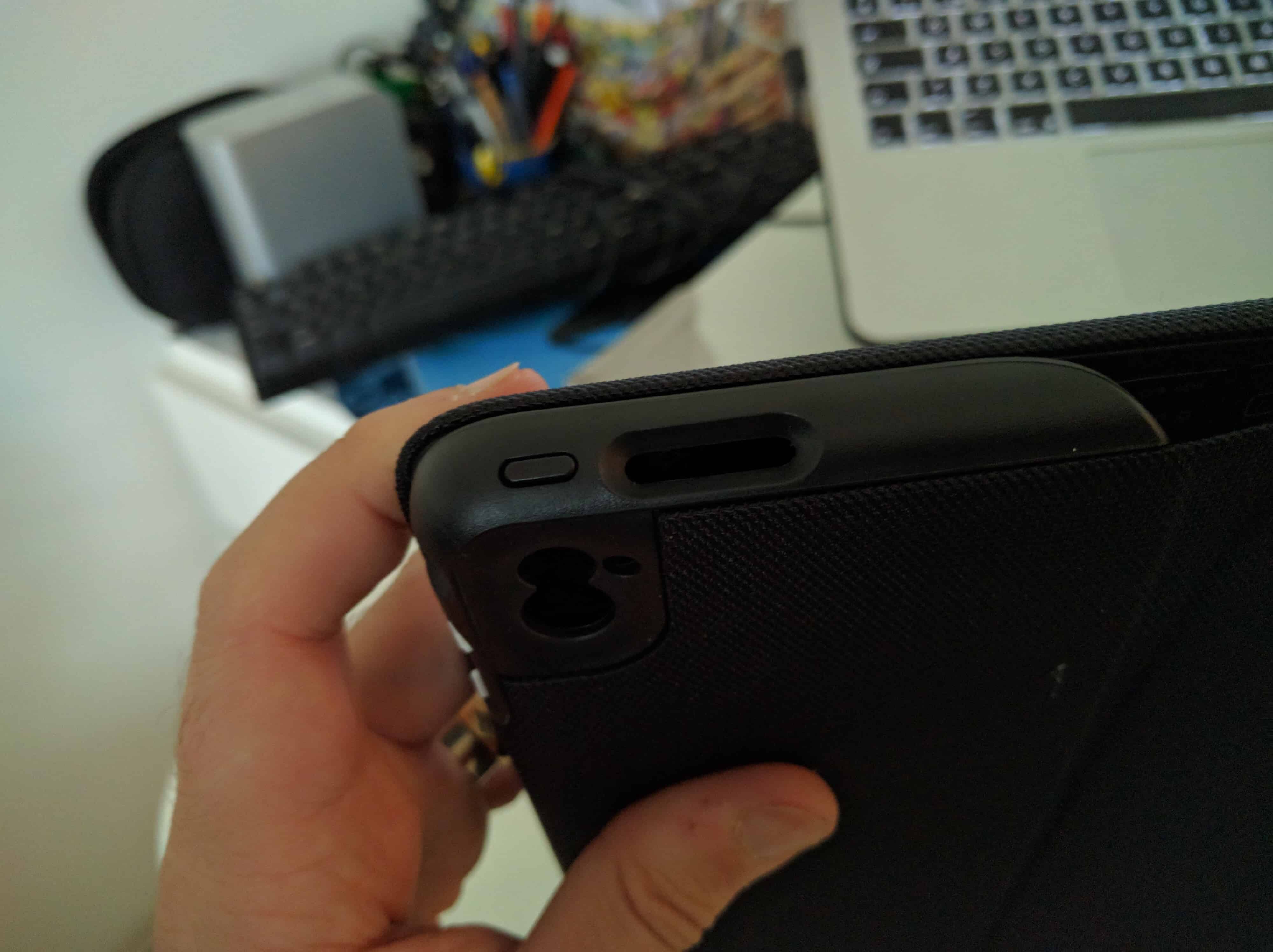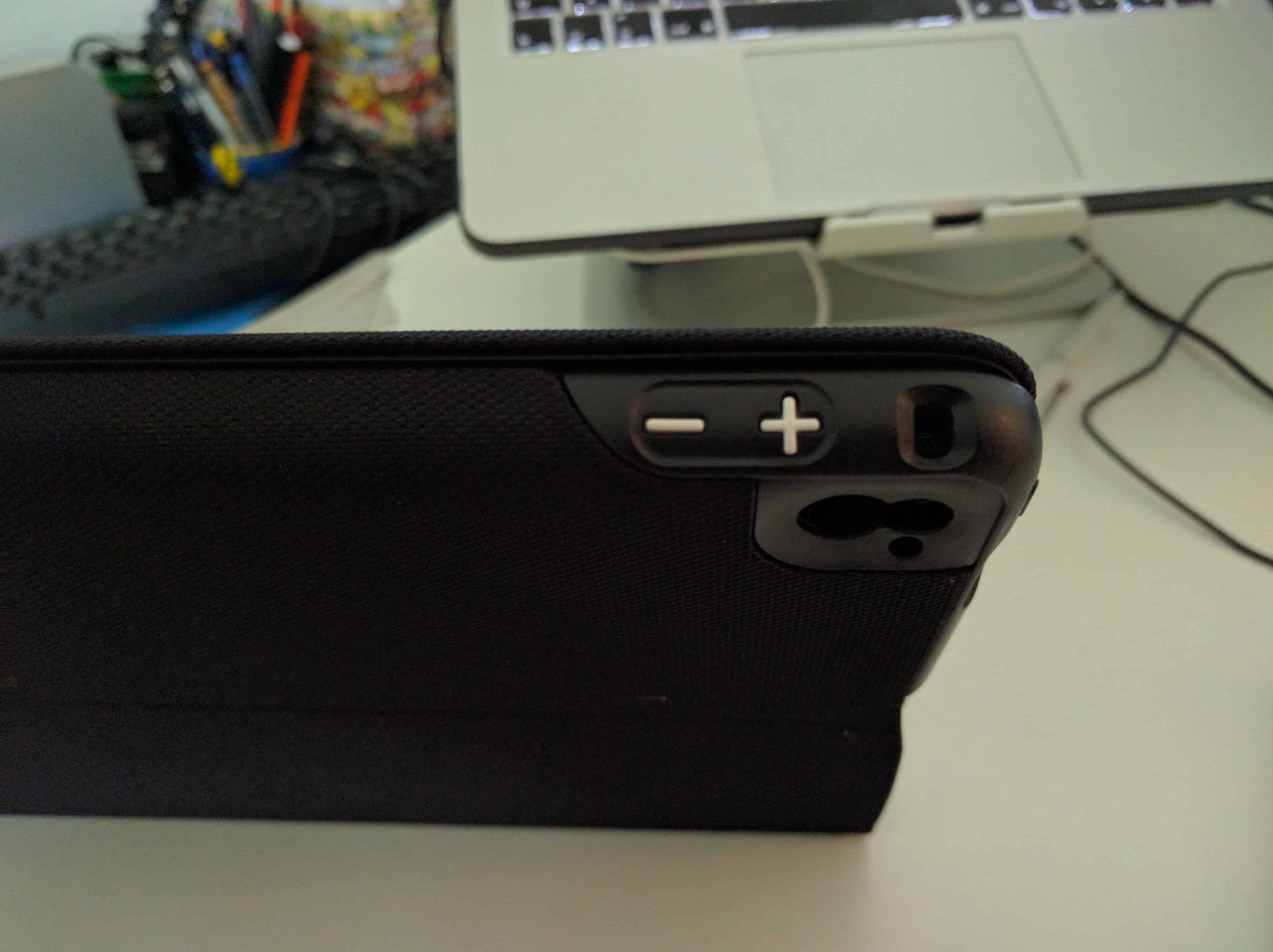 Laitteen toiselta sivulta löytyy äänenvoimakkuudelle omat painikkeet (+ ja miinus), jotka tarjoavat todella hyvän palautteen painaessa. Napit ovat responsiiviset ja niiden painamisen huomaa ja tuntee. Tämä on hyvä, koska suurin ongelma koteloissa yleensä on se että laitteen painikkeiden tuntuma katoaa.