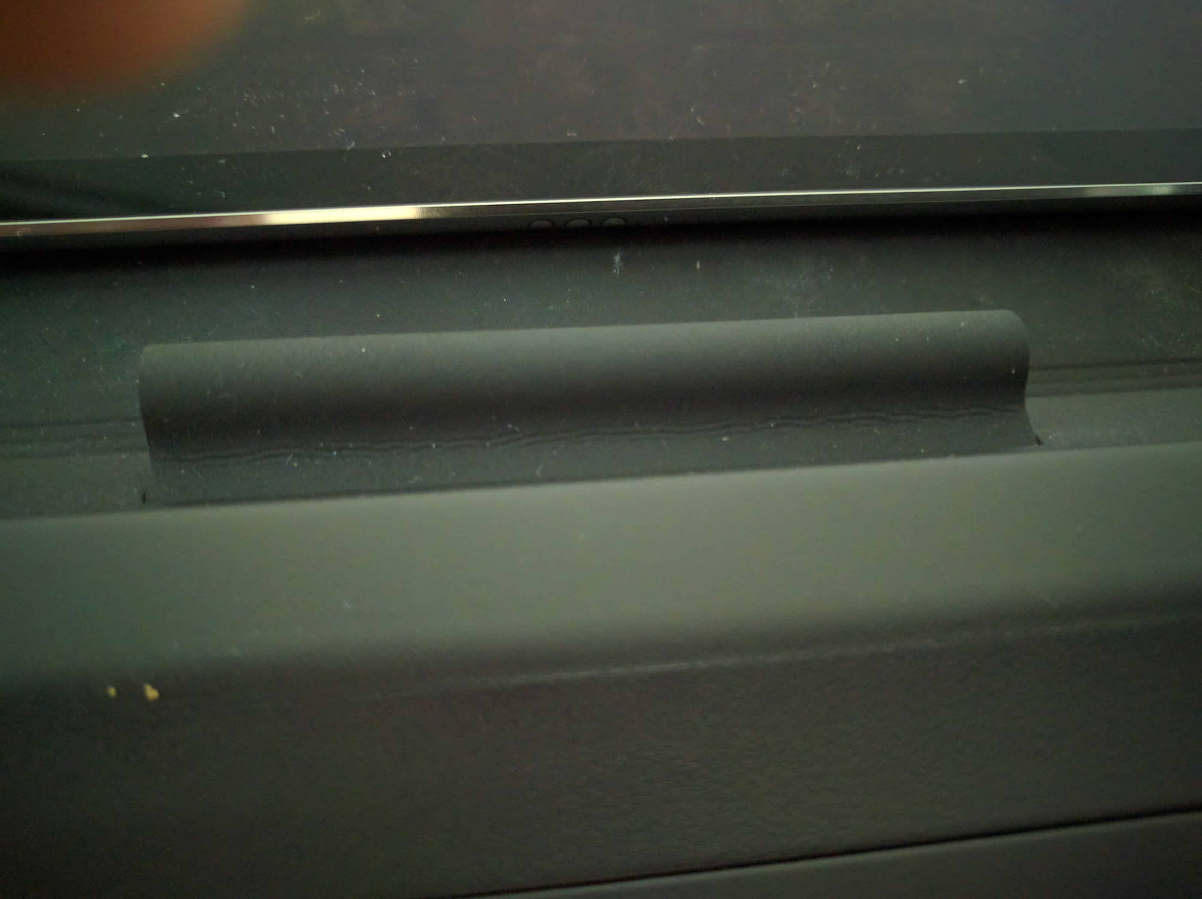 Toimintapainikkeiden yläpuolelta löytyy sitten Applen Smart Connector liitäntäpiste, johon iPadin omat liittimet yhdistyvät ja luovat yhteyden näppäimistöön. Näppäimistö saa myös virtansa tämän liittimen kautta, ja näppäimistöä ei erikseen tarvitse ladata vaan riittää että iPadissa on virtaa jolloin myös näppäimistö toimii. Poikkeuksina isommen iPad Pron Create näppäimistöön on Logitech korjannut yhden suuren ongelman, nimittäin koteloon on lisätty pidike myös Apple Pencil -kynälle. Tämä on todella hyvä lisäys suojakoteloon, koska kynän kuljettaminen erillään on ärsyttävää sekä aiheuttaa sen ettei kynä välttämättä aina ole edes mukana.