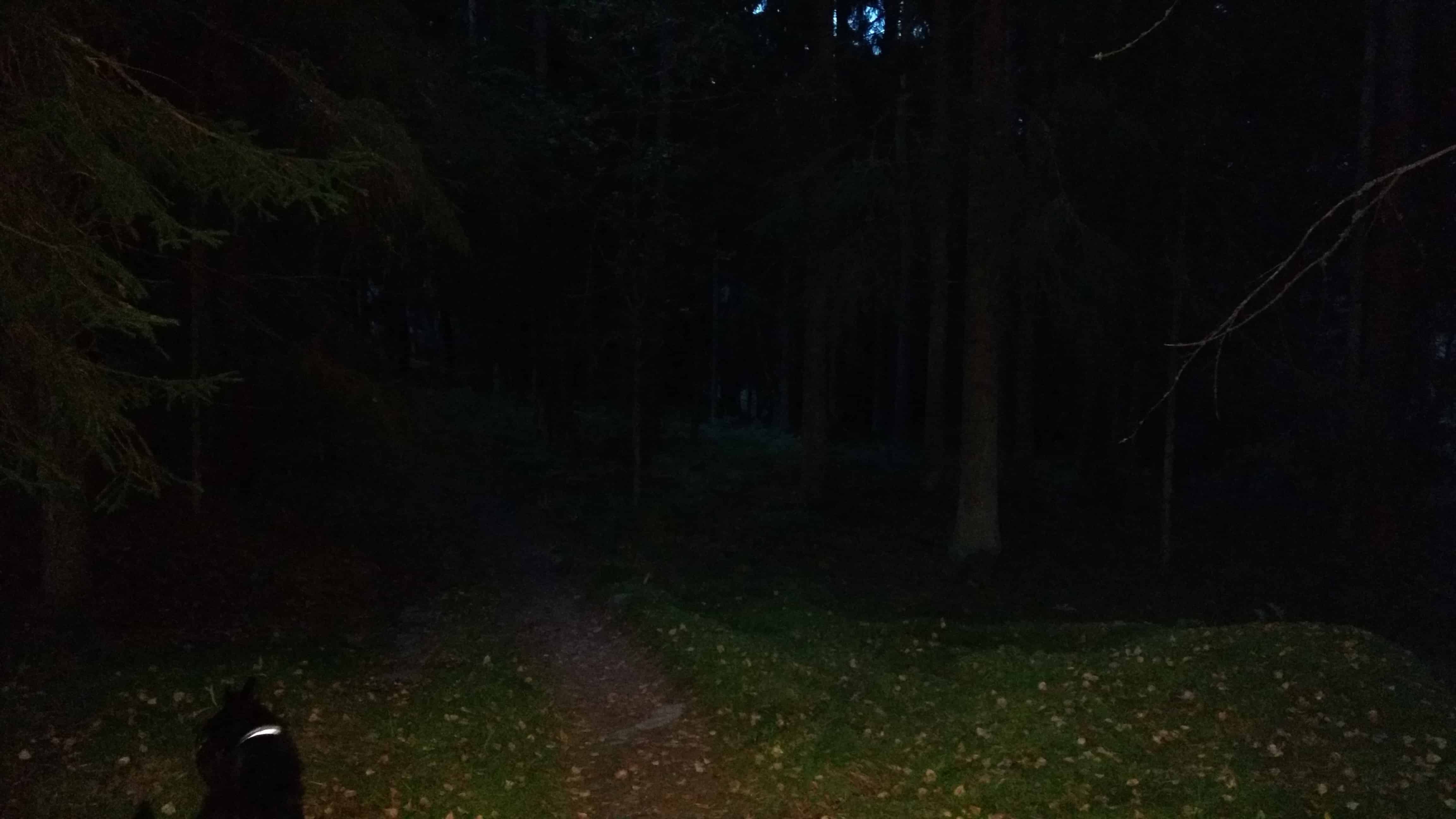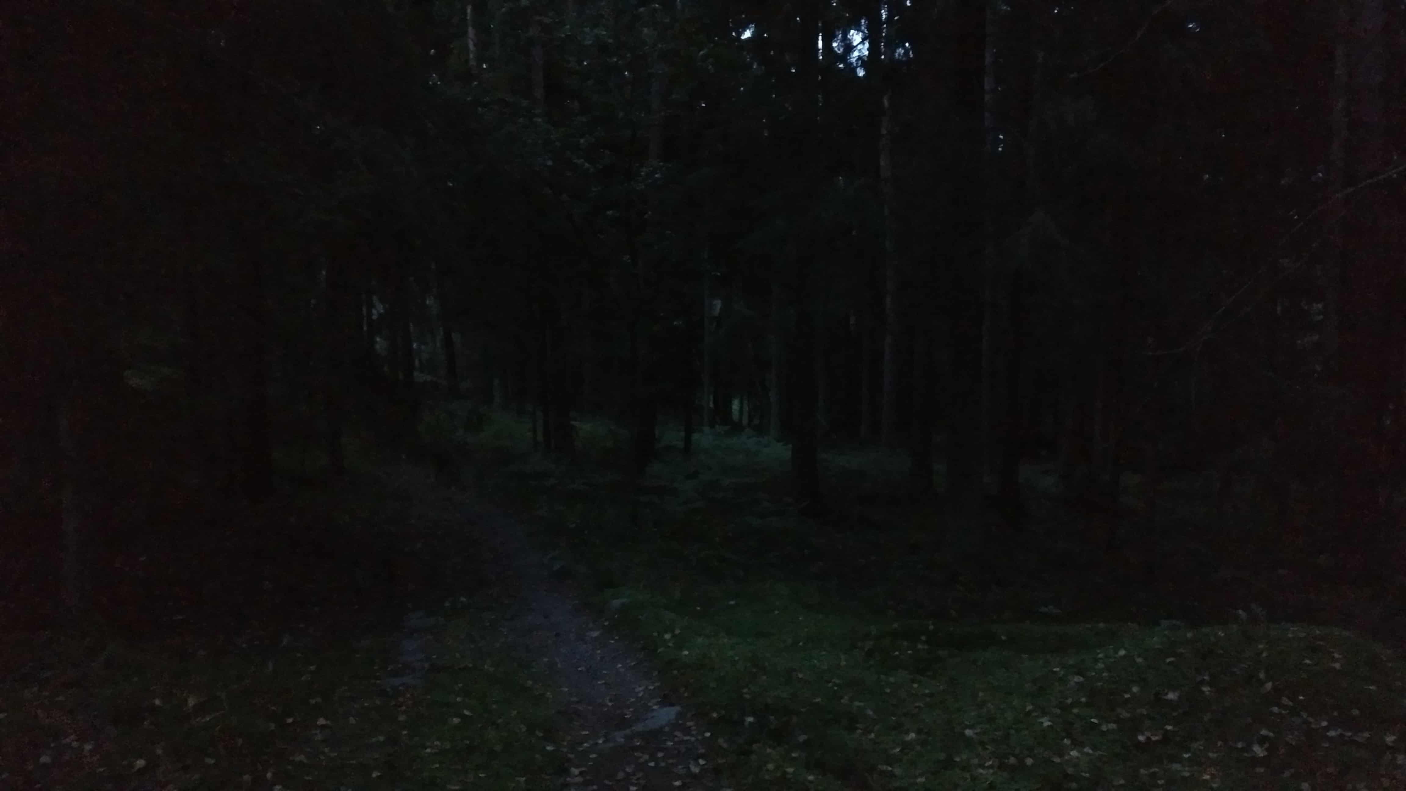Alla olevat 2 kuvaa on ottettu pimeässä metsässä, ja ensimmäisessä on ollut käytössä puhelimen oma salama ja toisessa taas kuva on otettu ilman salamaa.
