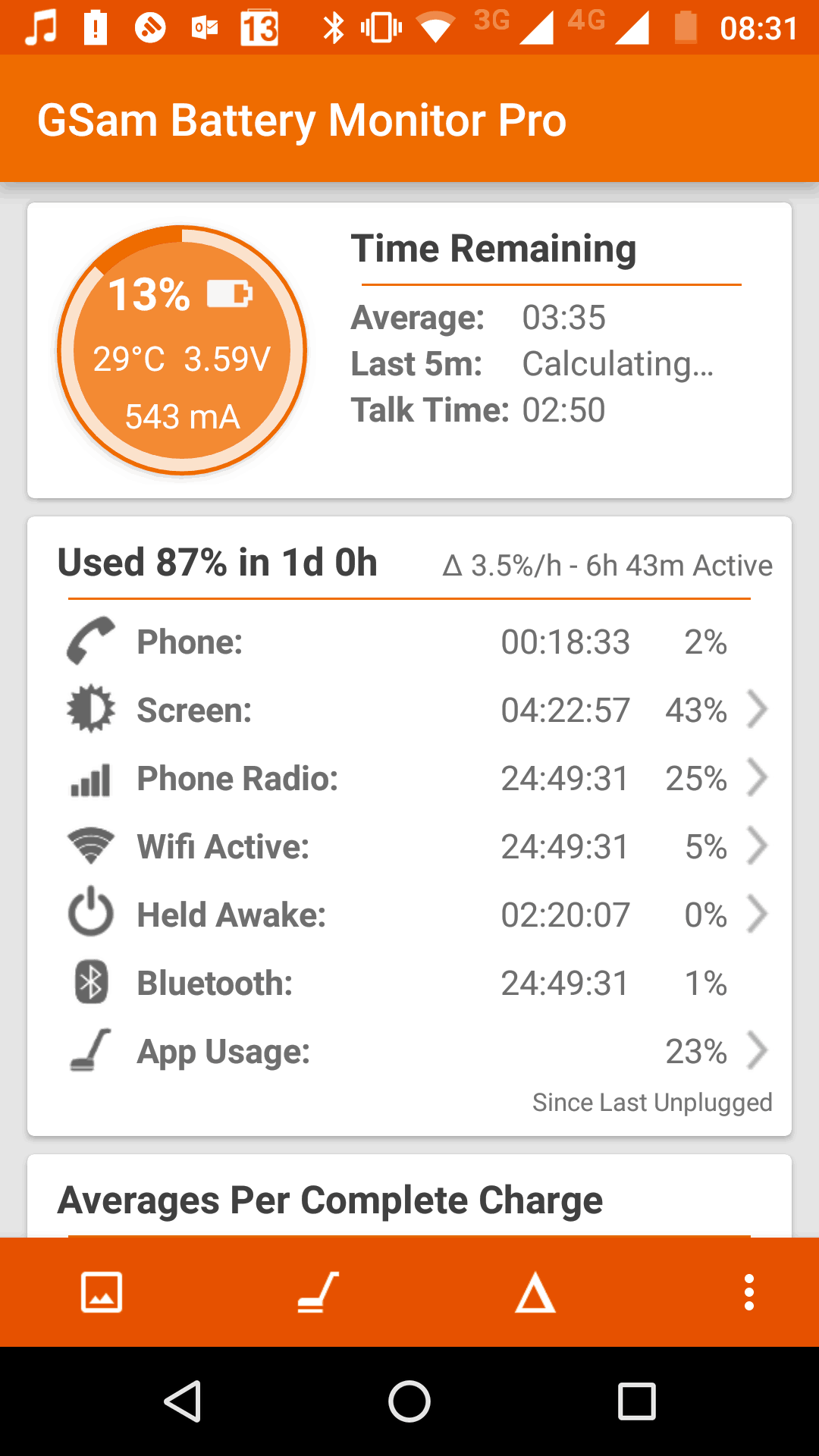 Testijakson aikana laite on ollut kovassa käytössä noin reilun puolitoista viikkoa. Käyttöön on kuulunut paljon surffailua sekä erilaisten kommunikaatiosovellusten, kuten Whatsapp ja Slack käyttöä. Lisäksi puhelimella kuunneltiin Bluetoothin yli striimattua musiikkia Apple Music -sovelluksella noin yhden tunnin per päivä. Moto G4 Plussan 3000 mAh akku jaksoi hienosti kokonaisen päivän suhteellisen kovaa käyttöä. Puhelin otettiin laturista noin klo 6 ja illalla noin klo 20 aikoihin akkua oli vielä jäljellä yleensä noin 20 prosenttia. Näyttöaikaa tälläisellä käytöllä saatiin 4,5-5h välillä, joka on erittäin hyvä suoritus. Akkuvertailuja lukiessa tulee aina huomioida se, että verkon kuuluvuus on yksi suurimpia vaikuttajia itse akkukestoon, joten suoraan 1:1 ei näitä tuloksia tule vertailla.