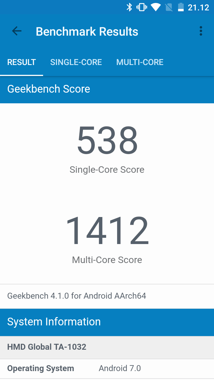 Suorituskyky mittauksissa Nokia 3 ei pääse loistamaan, sillä puhelimessa käytettävä MediaTekin järjestelmäpiiri ei ole kovinkaan tehokas. Ajoimme puhelimessa läpi Geekbench 4 ja AnTuTu -suorituskykytestit, joissa tulokset olivat aikalailla samaa tasoa muiden samassa hintaluokassa kamppailevien puhelimien kanssa. AnTuTu-testissä Nokia 3 sai 26 994 pistettä, joka ei ole kovinkaan mairitteleva luku. Päivittäisessä käytössä Nokia 3:ssa voi törmätä ongelmiin raskaampien sovelluksien kanssa. Raskaisiin sovelluksiin voidaan Nokia 3:n kohdalla luetella jo huoletta Facebook ja Snapchat, joiden aukeamisajat mitataan useissa sekunneissa. Esimerkiksi Snapchatin kohdalla tuntuu olevan huomattavia pätkimisiä, jotka johtuvat Nokia 3:n huonohkosta suorituskyvystä.