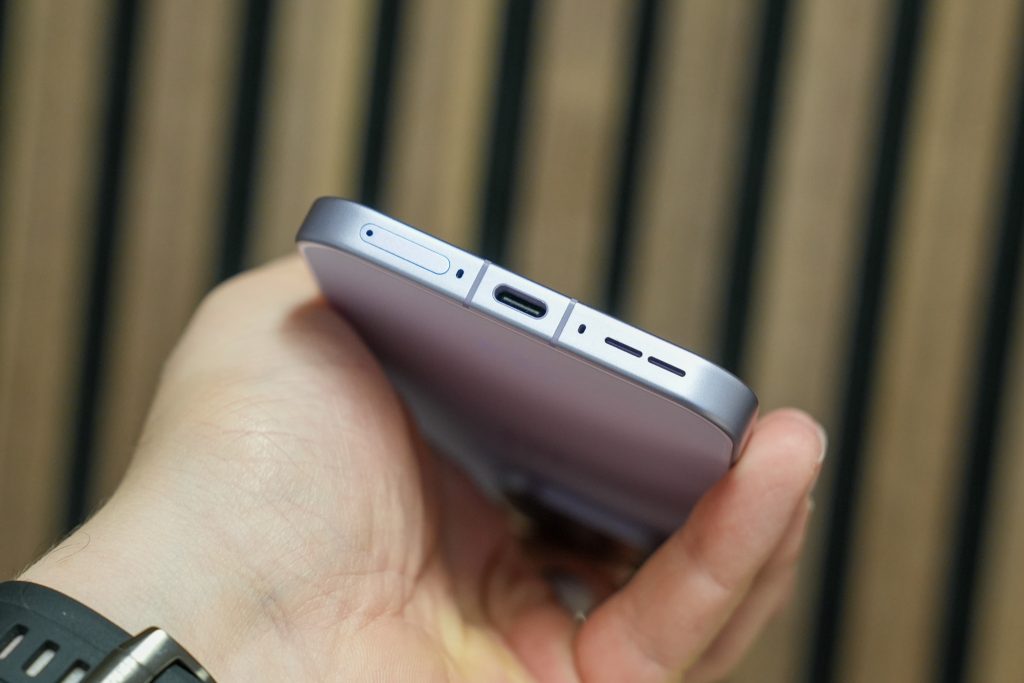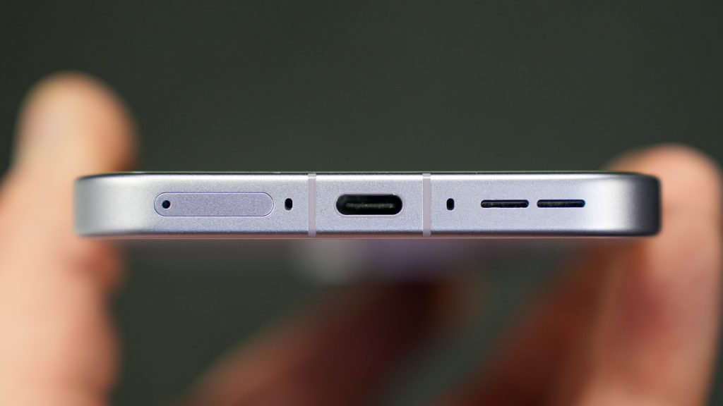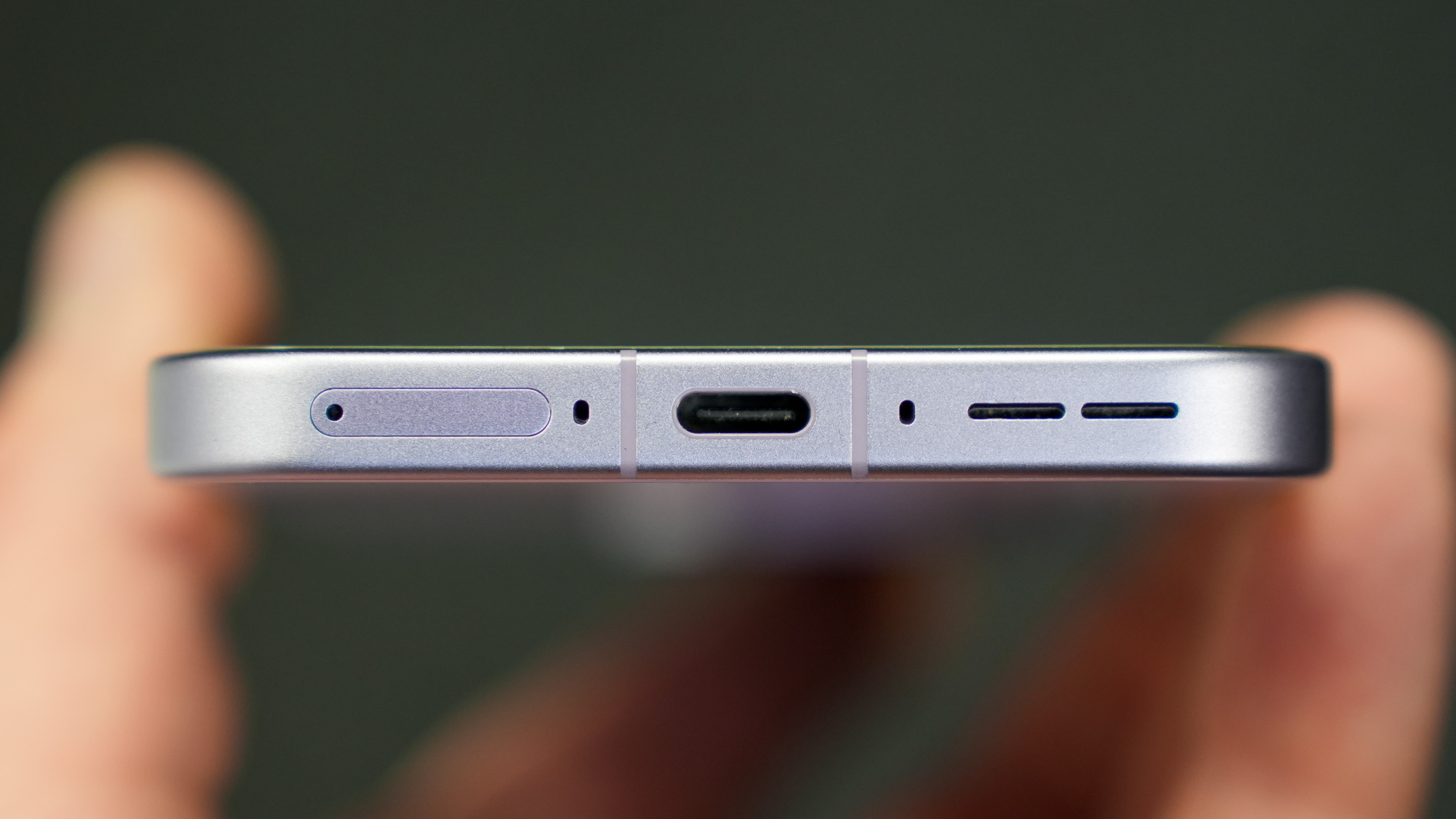 Yläreunassa on mikrofoni sekä kaiutinta varten pieni ritilä, tällä kertaa infrapunalähetin on siirretty takaosan kamera-alueeseen. Alareunassa on yksi kaiutin, kaksi mikrofonia, USB-C-tyypin latausliitin sekä SIM-korttiluukku. Puhelimeen on mahdollista asettaa samanaikaisesti kaksi nano-SIM-korttia, mutta tuettuna on myös eSIM-ratkaisu. Muistikorttipaikkaa ei ole.