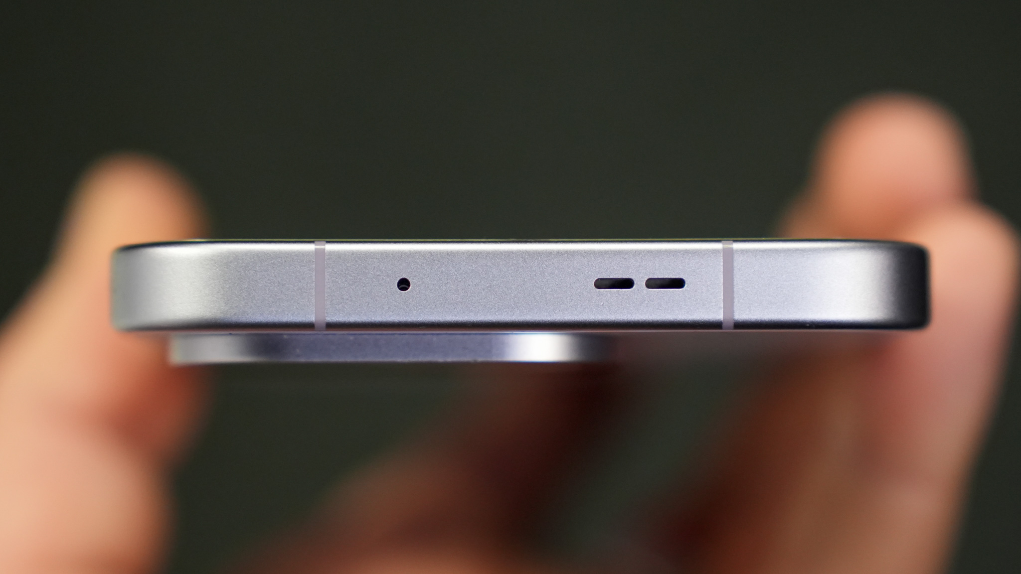 OnePlus 15:n oikeassa kyljessä on virta- ja äänenvoimakkuuspainikkeet. Ne on valmistettu kehyksen tapaisesti alumiinista. Painikkeet ovat aikaisempaa leveämmät, mikä parantaa kokemusta. Vasempaan reunaan on tuotu ainoastaan uusi Plus Key -painike, joka korvaa aikaisemman Alert Slider -tilakytkimen.