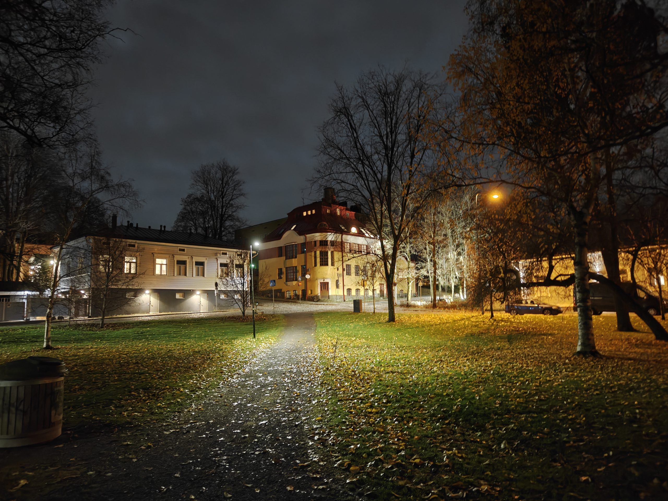 Vähäisessä valossa ultralaajakulmakameran heikkoudet korostuvat. Yökuvat ovat yleisesti pehmeämpiä kuin edeltäjässä sekä myös tummempia, eli kamera kerää vähemmän valoa. Näiden takia kuvissa on myös vähemmän yksityiskohtia, ja kuvat ovat paikoin hieman kohinaa sekä ne ovat dynamiikaltaan rajallisia. Yökuvaustila aktivoituu edelleen automaattisesti, mutta sen tuoma parannus ei ole kovin yllättävä. Toki valoa saadaan kuviin enemmän, mutta täysin huipputasoista jälkeä ei OnePlus 15 -puhelimelta kannata odottaa.