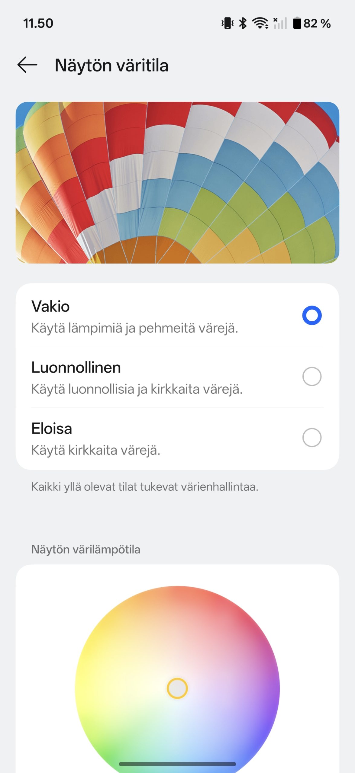 OLED-tekniikan ansiosta näytön tarjoama väriskaala on erinomainen ja tummat sävyt ovat erittäin syviä. OnePlus on kalibroinut näytön ainakin itseäni miellyttävällä tavalla, eikä värintoistoon tarvinnut koskea testijakson aikana. Näyttö tukee myös HDR10+ ja Dolby Vision -tekniikoita. Lisäksi mukana on ProXDR-tuki.