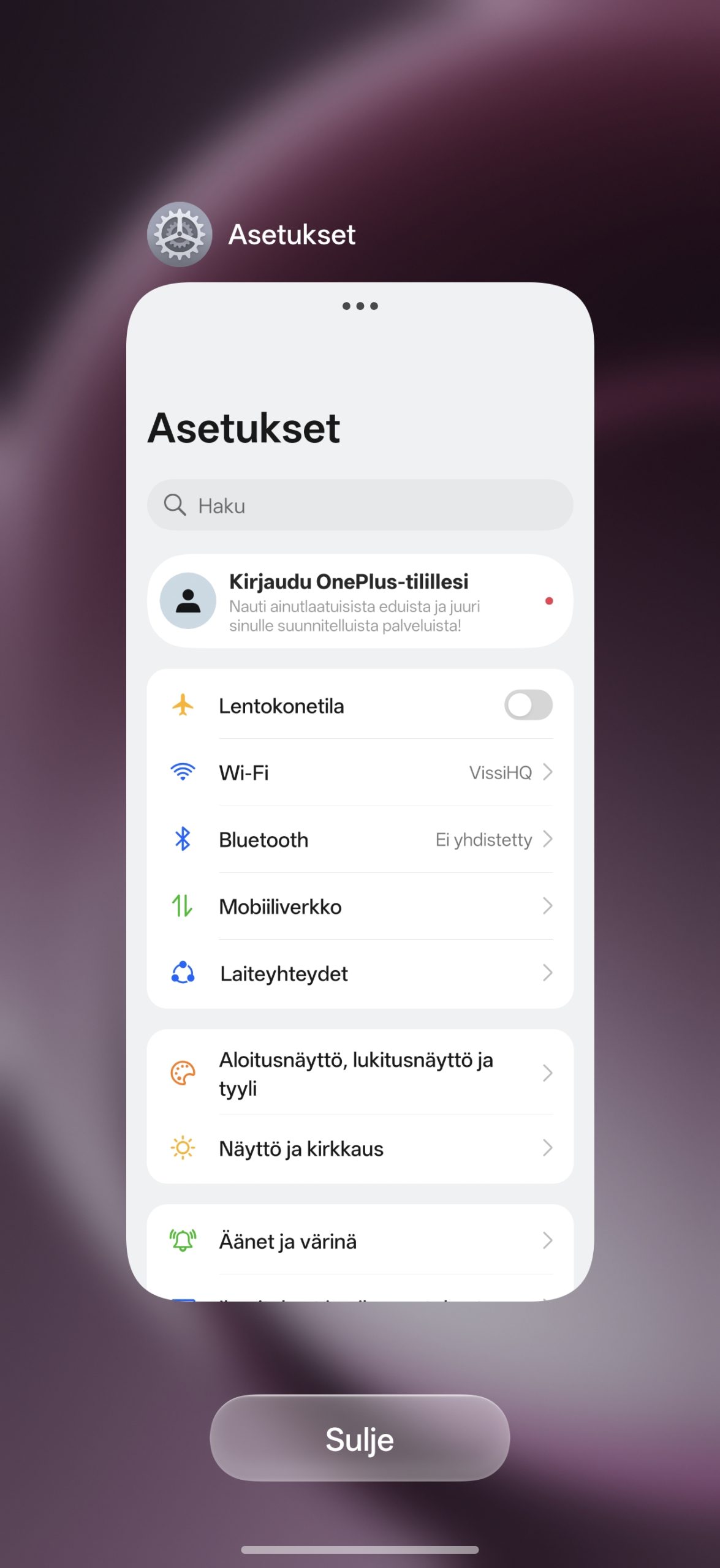 Vaikka teknisellä puolella OnePlus 15:n näyttö ei ole yhtä tarkka tai kirkas kuin edeltäjässä, niin mielestäni siitä ei tarvitse huolestua. Kokonaisuutena OnePlus 15 tarjoilee kuitenkin vakuuttavan näyttökokemuksen, joka riittää varmasti suurimmalle osalle käyttäjistä. Näyttö on edelleen riittävän tarkka, värit toistuvat hyvin, kirkkaus riittää auringonvalossakin ja virkistystaajuus tekee kokemuksesta sulavan.