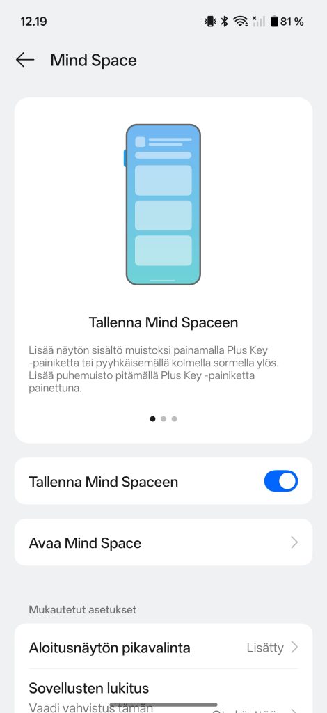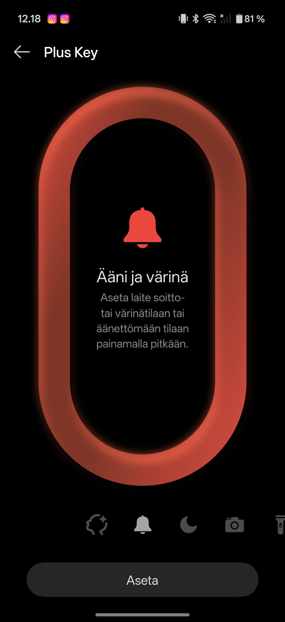 OnePlus 15 tuo mukanaan myös uuden Plus Key -painikkeen, joka sijaitsee laitteen sivussa. Sen oletustoiminto on lisätä sisältöä suoraan Plus Mindiin, mutta painikkeen voi ohjelmoida muihinkin tehtäviin. Esimerkiksi sen avulla voi vaihtaa äänitilaa, avata kameran, taskulampin tai kääntäjän. Ominaisuus on kuitenkin vähän teennäinen verrattuna edeltäjän Alert Slider -tilakytkimen yksinkertaisuuteen, josta itse todella pidin.