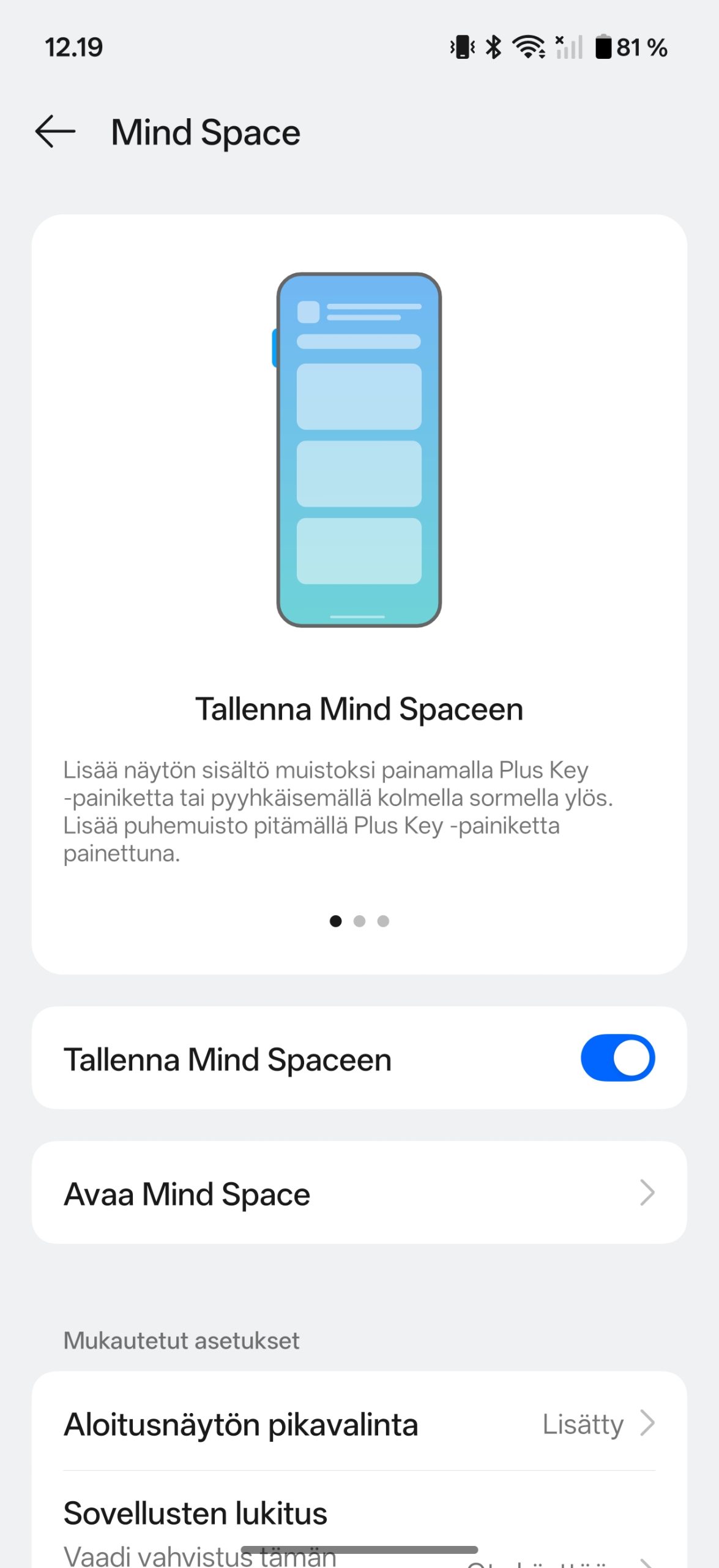 Plus Key -painike korvaa Alert Sliderin ja sitä käytetään Mind Space -tekoälyominaisuuteen oletusarvoisesti.