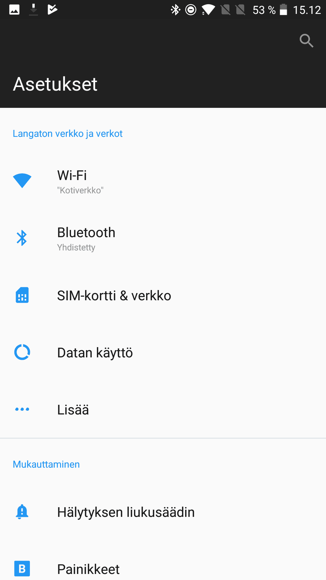 OnePlus 5 -puhelimeen valittu AMOLED-näytöt on mielestäni loistava valinta, sillä puhelimessa käytettävä OxygenOS on suunniteltu suoraan kyseiselle näyttöteknologialle. Laitteen käyttöliittymänkin voi vaihtaa tummaan teemaan, jolloin esimerkiksi asetukset ovat pääasiassa mustat, jolloin AMOLED-näytön pikselit eivät ole aktivoituna.