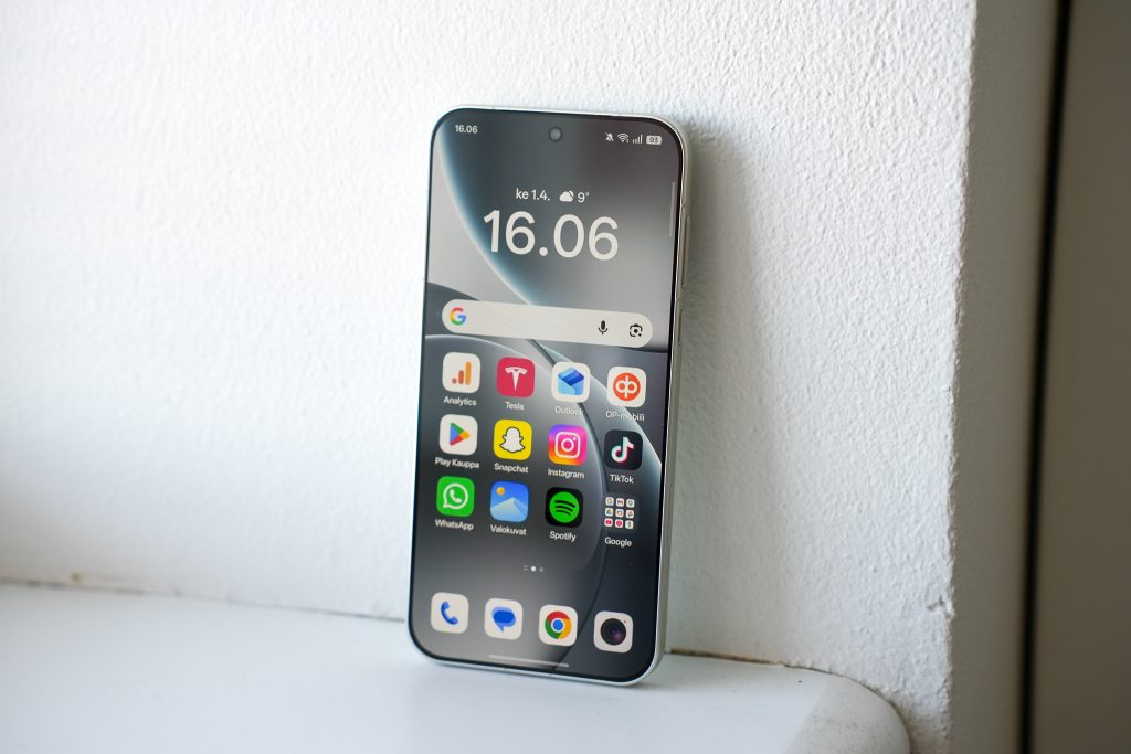 Kooltaan Oppo Find X9 Pro on hieman perusmallia suurempi ja painavampi. Painoa on kertonut jopa 224 grammaa, mikä on paljon, mutta ei vielä häiritsevän paljon tämän kokoluokan huippupuhelimessa. Paino tuo mukanaan tietynlaista jämäkkyyttä ja laadun tunnetta. Kokoa laitteella on 161,3 x 76,5 x 8,3 millimetriä, joten Oppo Find X9 Pro asettuu hyvin tuttuun kokoluokkaan.