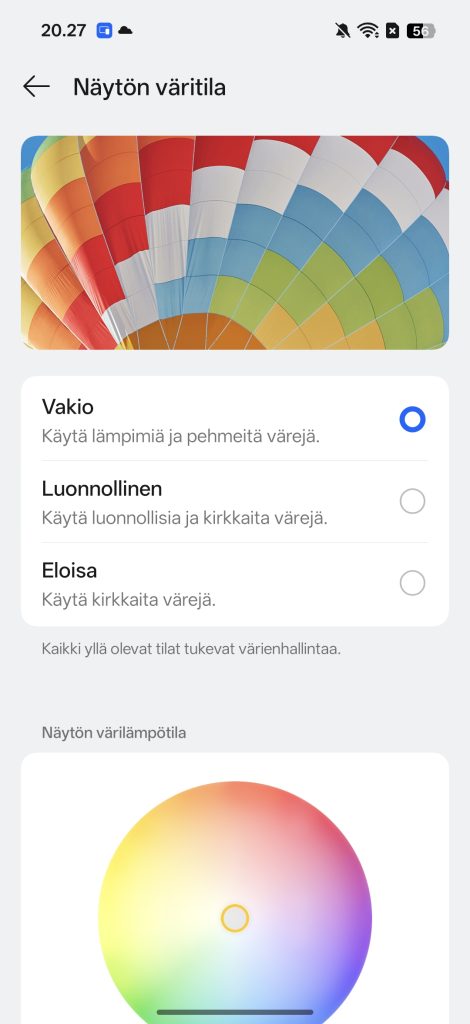 OLED-tekniikan ansiosta näytön tarjoama väriskaala on erinomainen ja tummat sävyt ovat erittäin syviä. Oppo on kalibroinut näytön ainakin itseäni miellyttävällä tavalla, eikä värintoistoon tarvinnut koskea testijakson aikana. Näyttö tukee myös HDR10+ ja Dolby Vision -tekniikoita. Lisäksi mukana on ProXDR-tuki.