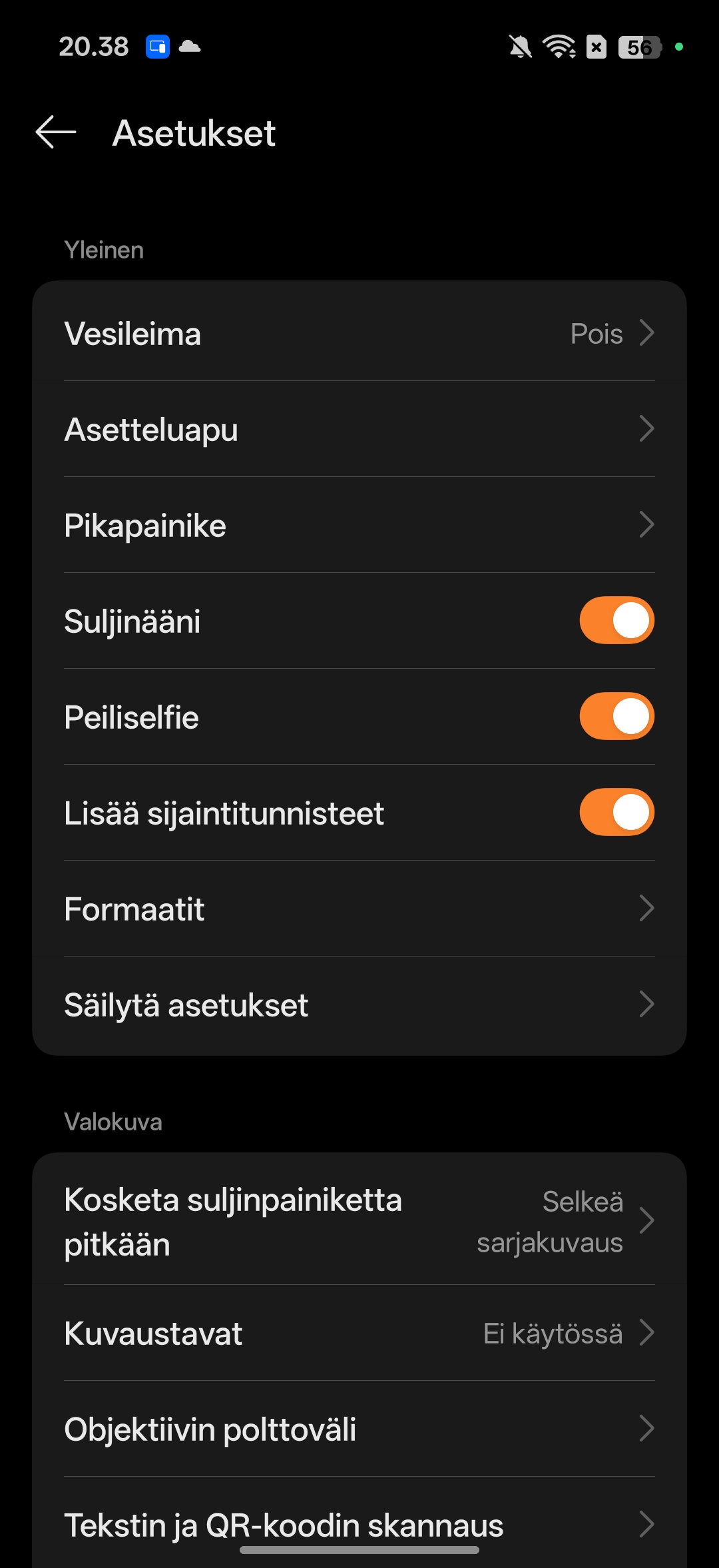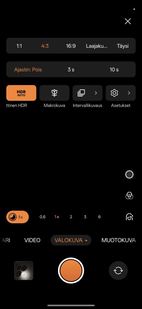 Kokonaisuus kamerasovelluksen kanssa oli miellyttävä, eikä vastaan tullut häiritsevää hidastelua. Lisäksi kameralla onnistuu kuvien ottaminen nopeasti, eli senkään osalta ei viivettä havaittu. Kokemus on juuri sellainen, mitä huippupuhelimelta voikin odottaa.