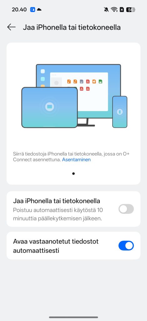 Ekosysteemin puolella ColorOS 16 parantaa tiedostojen jakoa ja laitteiden välistä yhteistyötä. Oppo Find X9 Pro osaa muodostaa yhteyden Windows- ja Mac-tietokoneisiin, ja jopa iPhoneen voi jakaa kuvia ja videoita lähijaon avulla yhtä helposti kuin toiseen Android-puhelimeen.