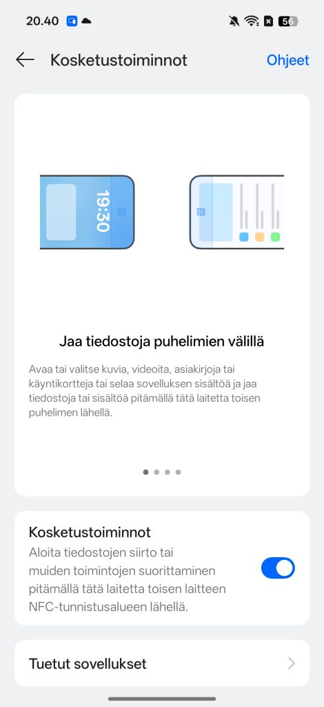 NFC löytyy tuttuun tapaan ja toimii moitteetta mobiilimaksamiseen. USB-C-liitäntä tukee nopeita tiedonsiirtoja ja se perustuu USB 3.2 Gen 1 -standardiin. Käyttökokemuksen viimeistelee Oppon uusi bioninen haptinen moottori. Se tarjoaa mielestäni erittäin tarkan ja luonnollisen tuntuisen värinäpalautteen.