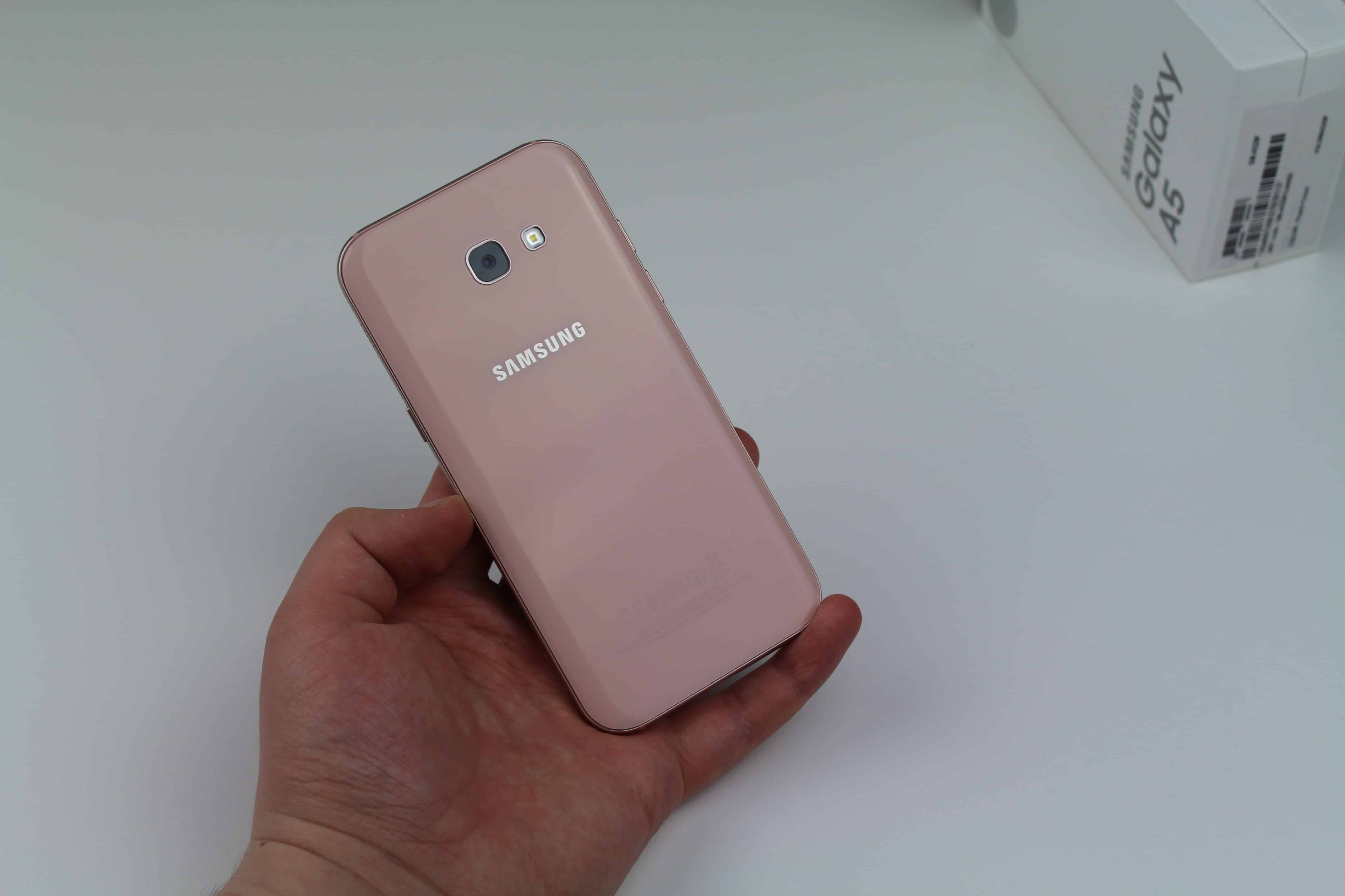 Laadullisesti Galaxy A5:ssa ei ole mitään moitittavaa ja ainakin henkilökohtaisesti tykästyin puhelimen ulkoiseen olemukseen, sillä se on hyvin lähellä esimerkiksi Samsungin viime vuoden Galaxy S7 -lippulaivapuhelinta. Testissämme olleessa vaaleanpunaisessa väriversiossa pienet naarmut lasipinnoissa eivät juuri näkyneet, mutta esimerkiksi mustassa versiossa naarmut saattavat näkyä paljon paremmin. Koska Galaxy A5:n takaosa on lasia, niin luonnollisesti se kerää itseensä myös huomattavasti sormenjälkiä, joka on yleinen vaiva lähes kaikissa lasisen takakuoren omaavissa puhelimissa.