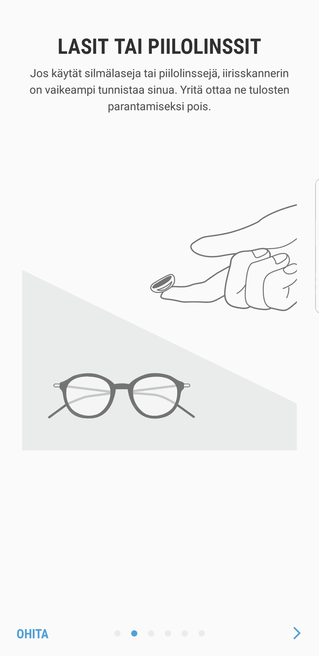 Onneksi Samsung ei tyydy kuitenkaan vain yhteen suojaustapaan uutuuspuhelimissaan, sillä nyt mukaan on tuotu vihdoin myös iirisskanneri, joka on löytynyt jo esimerkiksi Microsoftin Lumia 950 -puhelimista. Galaxy S8 -puhelimissa on näytön yläpuolella kaksi anturia iirisskannerille. Toinen näistä on iiristunnistuksen punainen LED-valo ja toinen on iiristunnistuksen kamera. Puhelimien julkaisun aikaan testattuani iirisskannausta päivittäisenä lukituksenpoistotapana, en juurikaan vakuuttunut skannauksen toimivuudesta ja laitteen sai loppujenlopuksi avata jatkuvasti PIN-koodilla. Kuitenkin muutaman ohjelmistopäivityksen jälkeen kokeilin iirisskannausta uudemman kerran ja se tuntui toimivan huomattavasti paremmin kuin ennen. Tällä hetkellä iirisskannaus toimii hyvin, mutta ei se ole kuitenkaan yhtä nopea tapa avata puhelimen lukitus kuin sormenjälkilukija. Iirisskannauksessa on myös muita huonoja puolia, sillä se ei toimi kovinkaan hyvin auringonpaisteessa tai jos käytössä on silmälasit tai aurinkolasit.