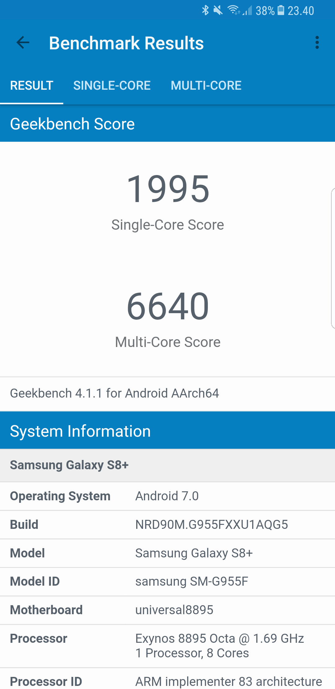 | Suoritin: | 8-ytiminen Exynos 8895 (Mali-G71 MP20) |
