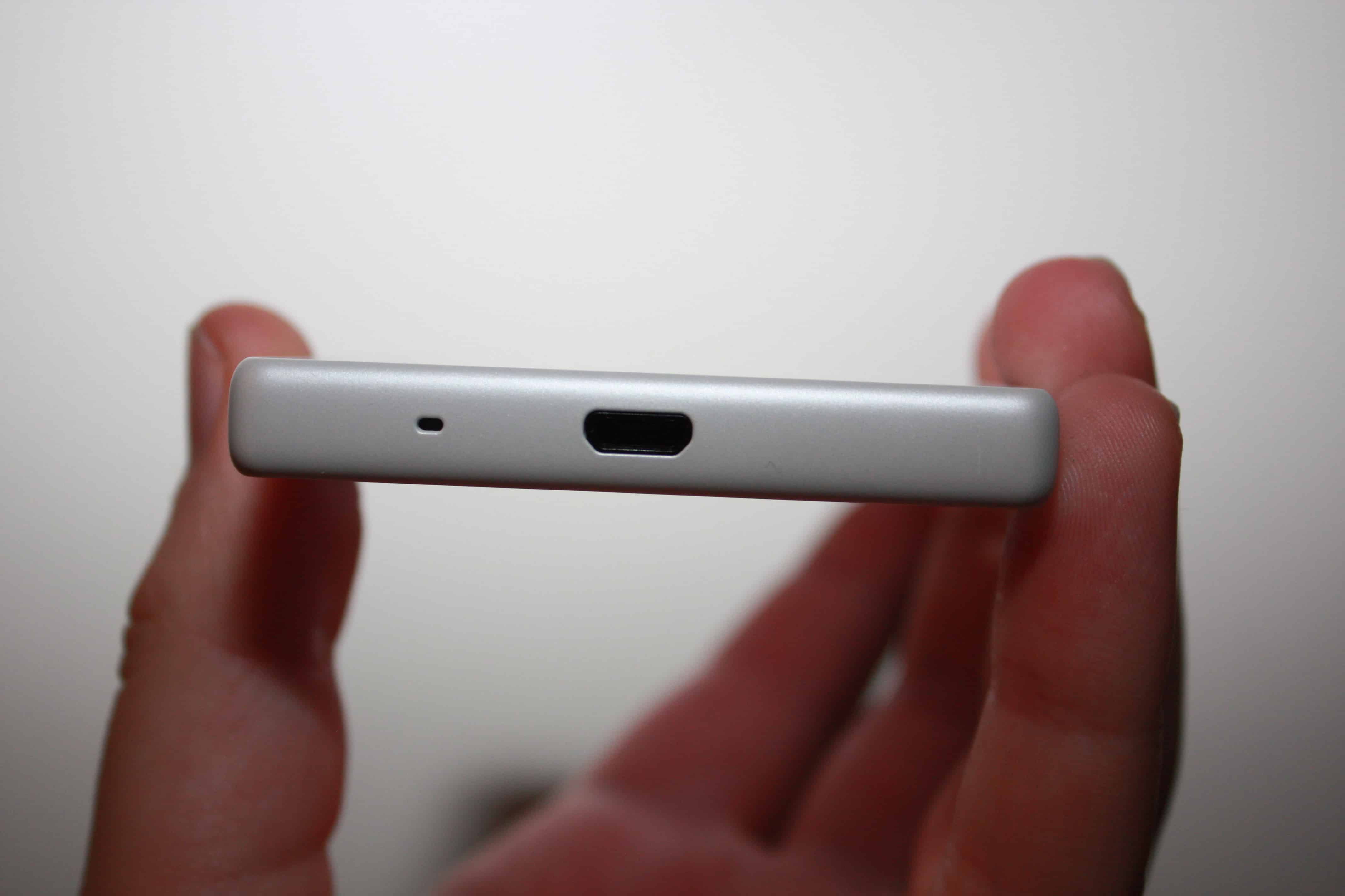 Laitteen vasemmasta kyljestä löytyy luukku, jonka takaa löytyy paikat SIM-kortille sekä microSD-kortille. Xperia Z5 Compactin alareunasta löytyy vain Micro USB-liitin sekä laitteen yläreunasta löytyy normaali 3,5 millimetrin kuulokeliitäntä.