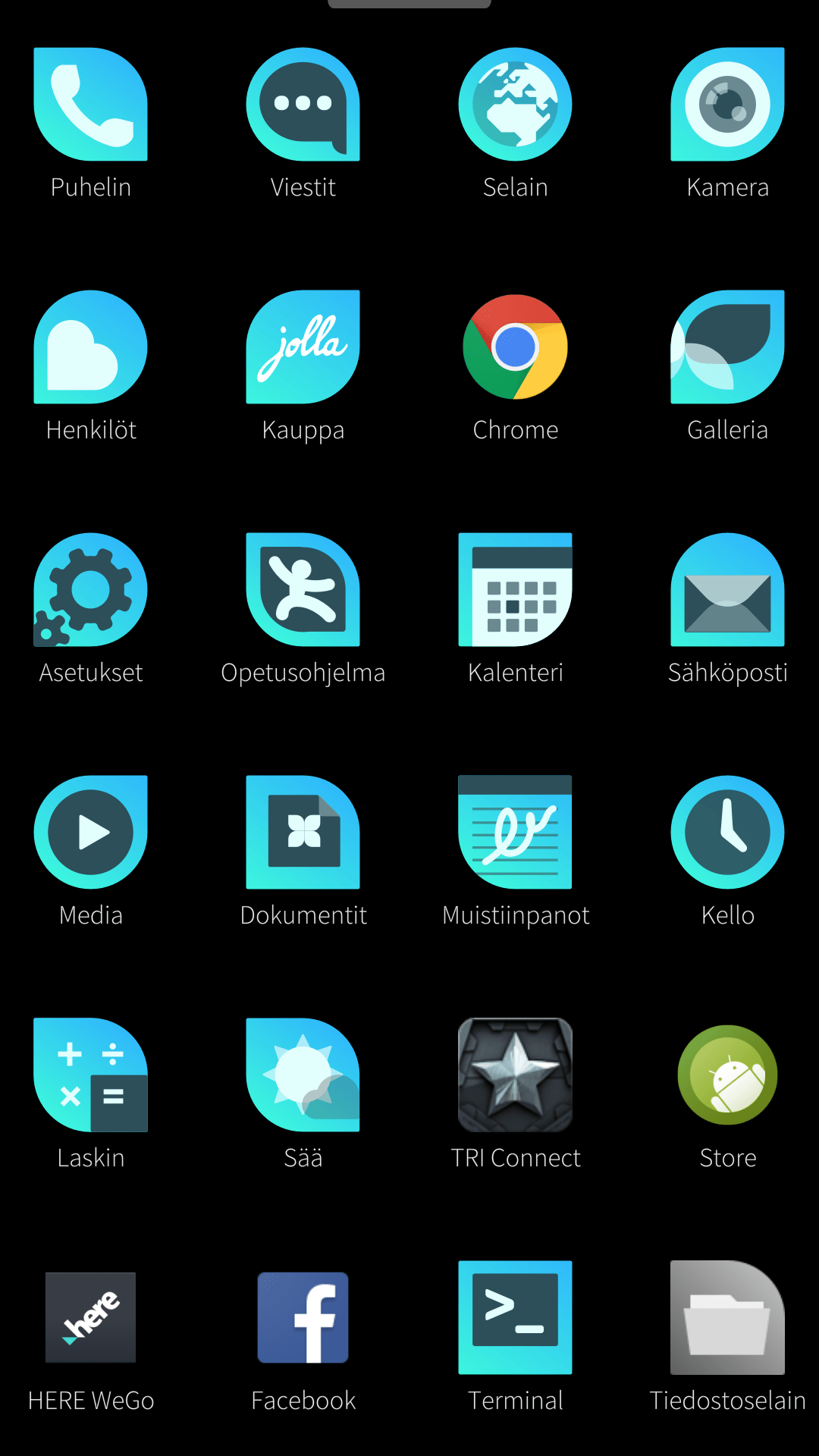 Turing Phone Dark Wyvernissä ei juurikaan ole valmistajan omia muutoksia. Ainoa näkyvä ero normaaliin Sailfish OS -versioon on sovelluskuvakkeet, jotka ovat nyt siniset. Puhelimeen on esiasennettuna myös yksi Turingin oma sovellus, joka kantaa nimeä ”TRI Connect”, mutta en päässyt sitä testijakson aikana testaamaan. TRI Connect on Android-sovellus, joka ihmetyttää, sillä Turing on kuitenkin sitoutunut käyttämään Sailfishiä ja näin ollen olisi kaikista luonnollisinta, että sovellus olisi tehty suoraan Sailfish -käyttöjärjestelmälle.