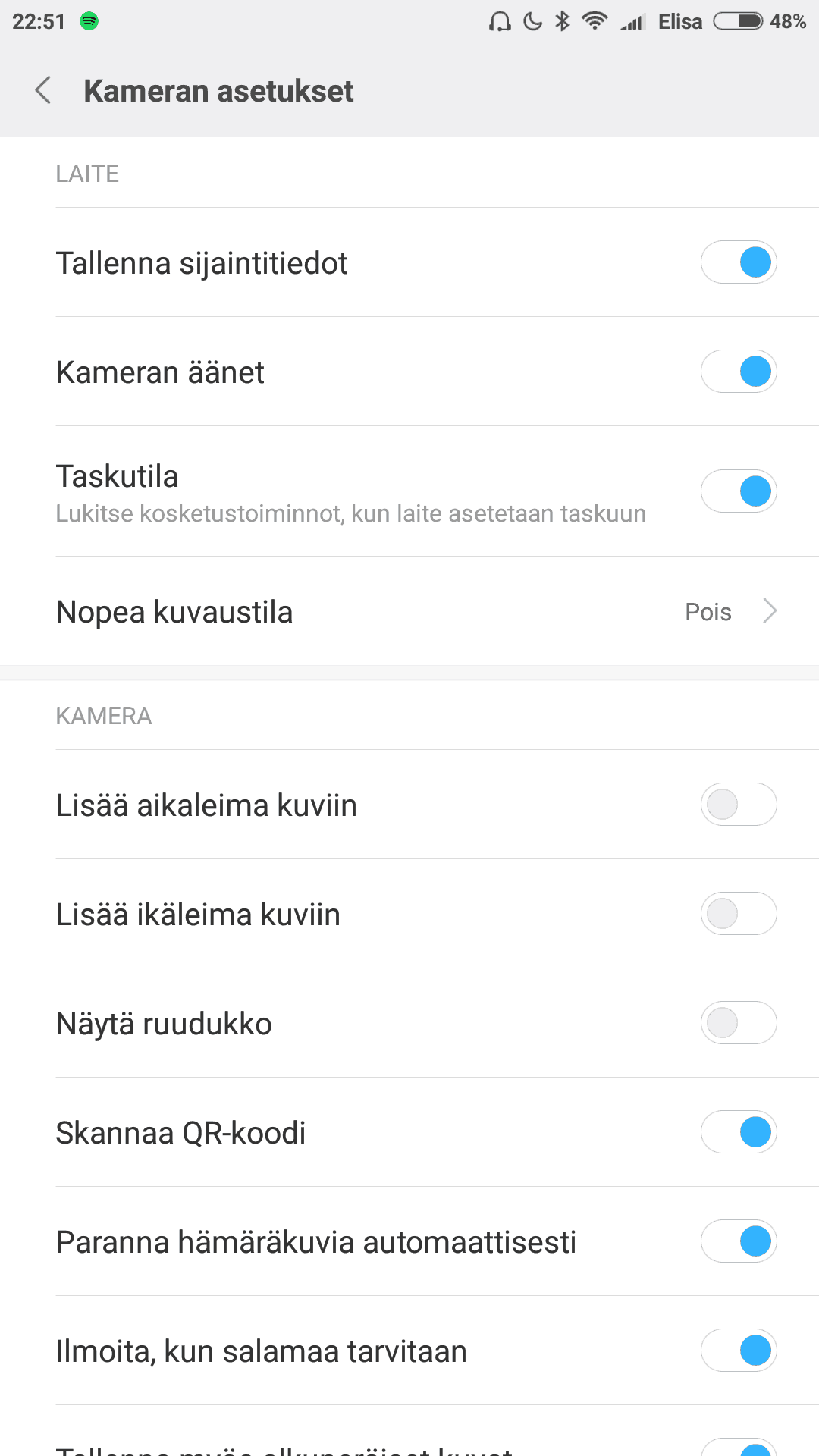Puhelimen vakiokamerasovellus on hyvin pitkälti sama kuin kaikissa muissakin Xiaomin puhelimissa. Sovelluksessa on paljon kuvaustiloja, joista toiset ovat tarpeellisia ja toiset vähemmän tarpeellisia. Tärkein ominaisuus kamerasovelluksissa on monille kuitenkin pro-kuvaustila, jollainen myös Mi Max 2:ssa on. Toki pro-tila ei ole yhtä kattava kuin monissa lippulaivapuhelimissa, mutta tarvittaessa on mahdollista säätää manuaalisesti valkotasapainoa, tarkennusta, valotusaikaa sekä ISO-arvoa. Alla on muutamia kuvia kamerasovelluksesta.