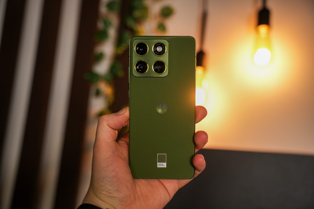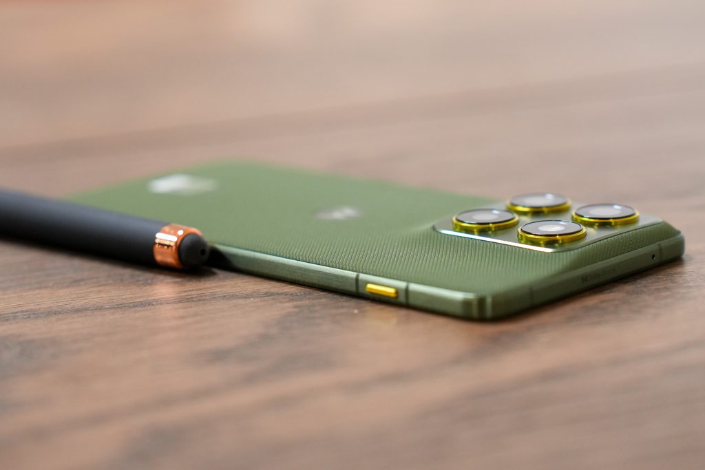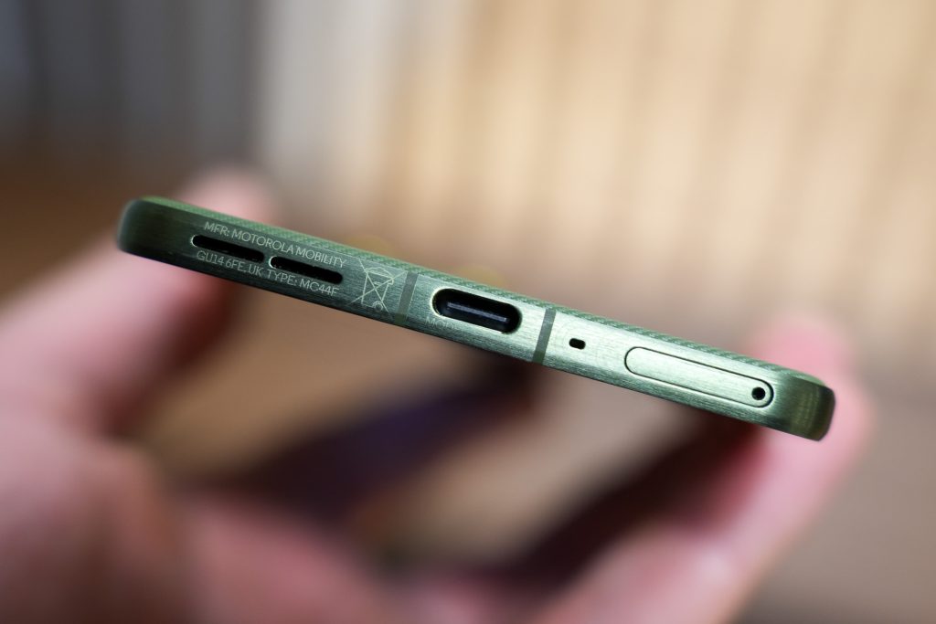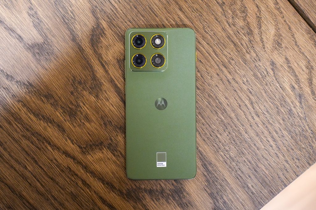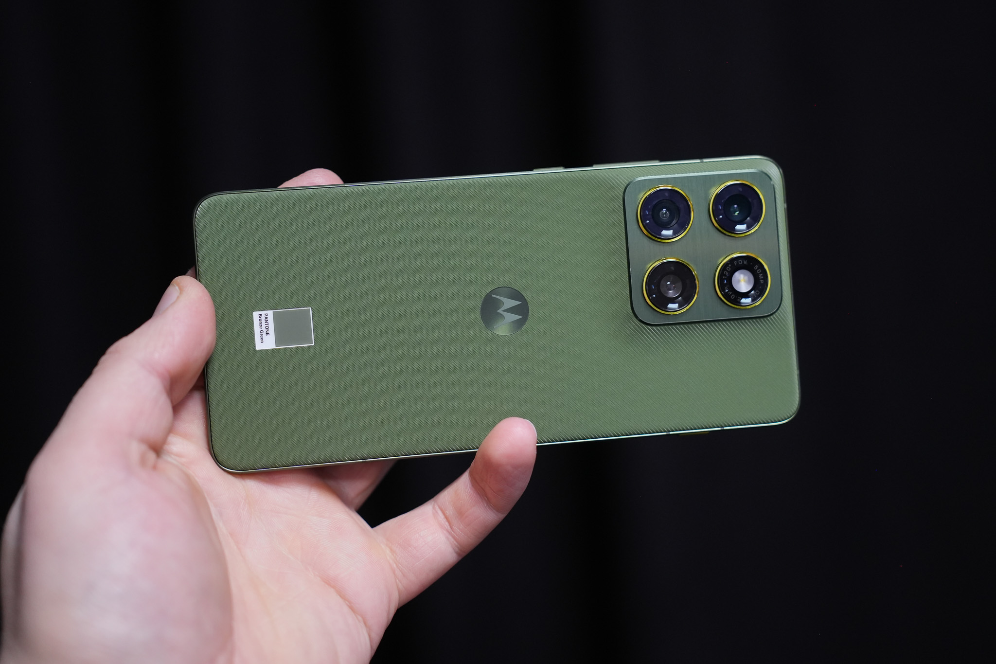 Takapinnan viimeistely on tyylikkään mattainen ja pehmeästi käsitelty, ja nylonin inspiroima pinta tekee puhelimesta miellyttävän tuntuisen ilman, että se on liukas. Motorola on myös panostanut väreihin, Pantonen kuratoimat sävyt, kuten Lily Pad ja Bronze Green, tekevät laitteesta yksilöllisen ilman mitään suurta ylikorostusta.