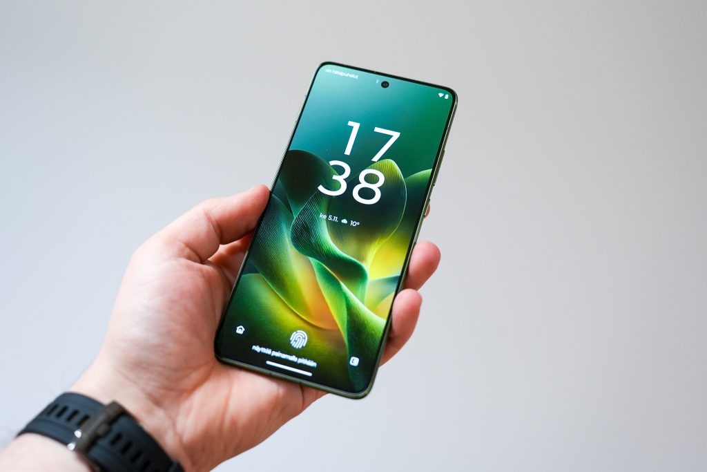 Motorola Edge 70:n etupuolelta löytyy 6,67 tuuman pOLED-näyttö, joka on täysin tasainen. Kyseessä on muutos, joka varmasti jakaa mielipiteitä. Edge-mallisto on tunnettu kaartuvista näytöistään, mutta nyt Motorola on selvästi halunnut tehdä selkeän suunnanmuutoksen. Itse en jää kaarevia reunoja kaipaamaan, sillä tasainen näyttö tuntuu käytännöllisemmältä. Näytön kehykset ovat myös miellyttävän ohuet ja symmetriset, ja sormenjälkilukija on sijoitettu suoraan näytön alle.