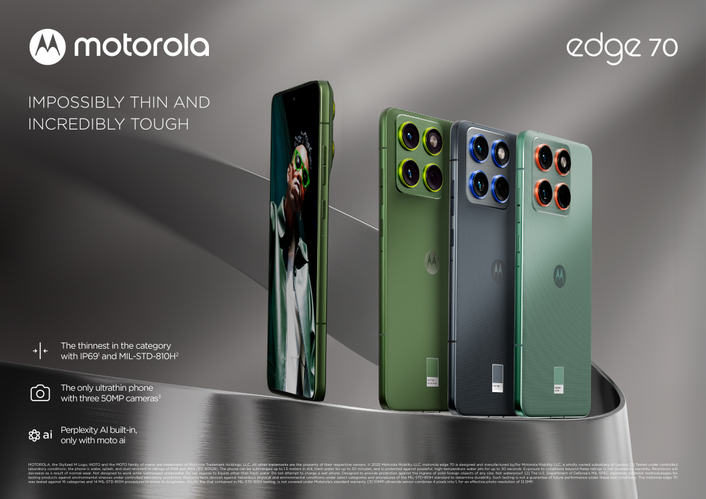 Motorola on esitellyt uuden Motorola Edge 70 -älypuhelimen, joka on yhtiön uusin premium-puhelin ohuen rakenteensa ja tekoälyä hyödyntävien ominaisuuksiensa ansiosta.