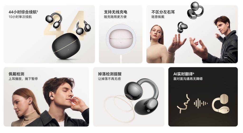 Earbuds Clip 2 Pro -malli perustuu avoimeen arkkitehtuuriin, jossa ääni ohjataan korvan ulkoreunalle ilman silikonitulppia. Kuulokkeiden “titaani-kaarisilta” on nyt uudistettu Comfort Titanium Bridge 2.0 -versioon, joka lisää joustavuutta ja vähentää painetta korvassa. Honorin mukaan rakenteen pehmeys on kasvanut 23 prosentilla, ja samalla kestävyyttä on parannettu. Rakenteen luvataan kestävät yli 5000 taivutusta. Yksittäinen kuuloke painaa vain 6 grammaa.