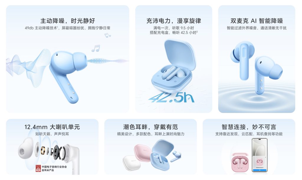 Honor Earbuds S nojaa ennen kaikkea vastameluun ja akunkestoon. Malli tarjoaa jopa 49 deslibelin aktiivisen melunvaimennuksen, jonka luvataan blokkaavan tehokkaasti ympäristön metelin niin kaupunkiliikenteessä, lentokentillä kuin toimistoarjessa. Puheluiden selkeyttä tukee kaksoismikrofonin AI-kohinanvaimennus, joka pyrkii minimoimaan taustahälyn ääniä analysoimalla.