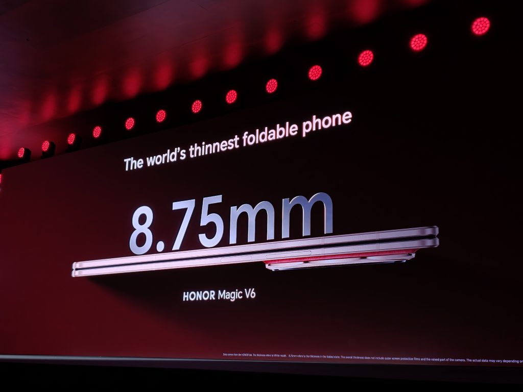 Honor Magic V6 on vain 8,75 millimetriä paksu suljettuna, mikä tekee siitä yhden markkinoiden ohuimmista taittuvista puhelimista. Ohuudesta huolimatta Honor kertoo panostaneensa rakenteelliseen kestävyyteen sekä uuteen saranaratkaisuun, jonka tavoitteena on pitkä käyttöikä ja parempi luotettavuus.