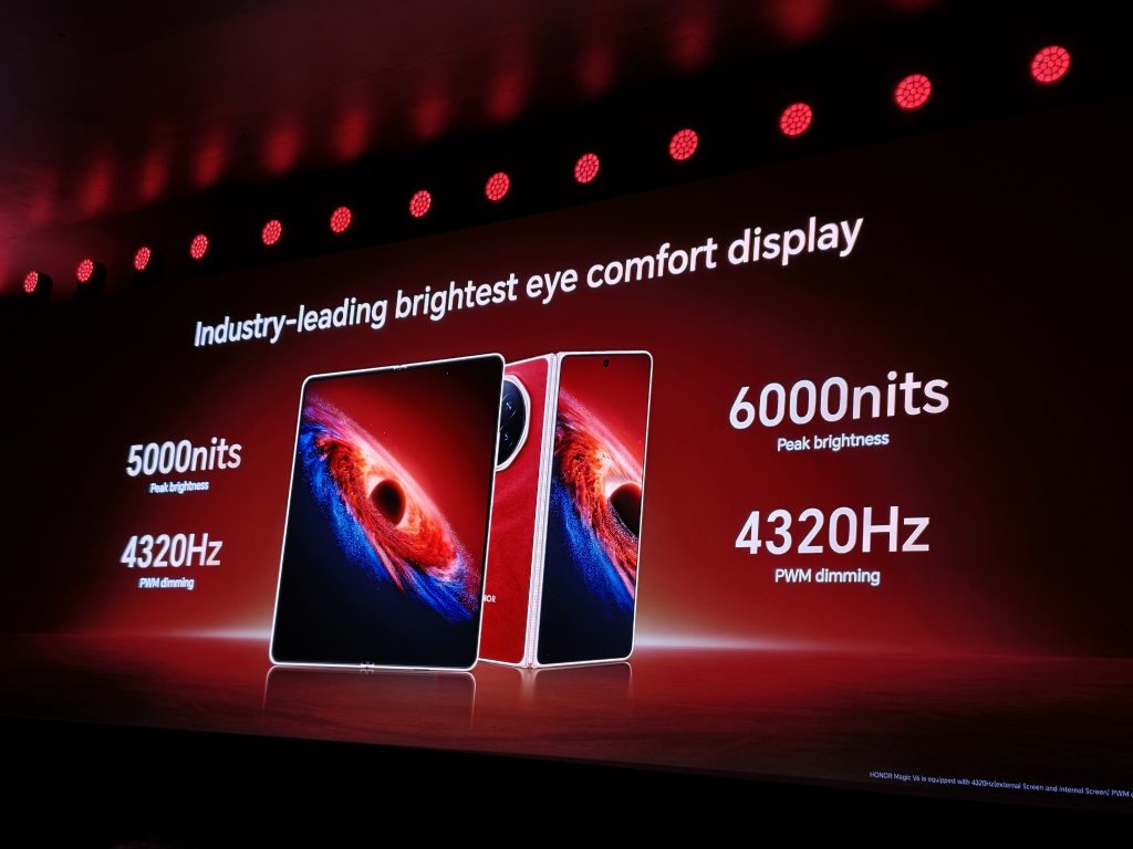 Magic V6 sisältää kaksi LTPO 2.0 -tekniikkaan perustuvaa OLED-näyttöä. Tarjolla on 6,52 tuuman ulkonäyttö ja 7,95 tuuman sisänäyttö avattuna. Molemmat tukevat mukautuvaa 1-120 hertsin virkistystaajuutta. HDR-sisällössä kirkkaus yltää parhaimmillaan jopa 6 000 nitiin ulkonäytöllä ja 5 000 nitiin sisänäytöllä.