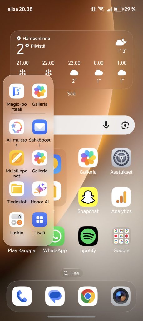 MagicOS 10 jätti itselleni fiiliksen, että HONOR haluaa tehdä käyttöliittymästä yhtä aikaa tyylikkään ja hyödyllisen, ja ennen kaikkea sellaisen, joka pysyy arjen mukana. Se ei ole vain uusi versio, vaan uusi tapa silottaa pieniä kitkoja pois arjesta.
