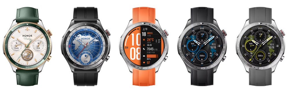 Honor Watch 5 Pro on saanut viisi eri versiota. Explorer-versiossa on vihreä nahkaranneke, Astronomer-versio tarjoaa tummansinisen toteutuksen, Climber-versiossa on musta rakenne, Pioneer-versio on väritykseltään harmaa ja Voyager on harmaa sinisillä korostuksilla.