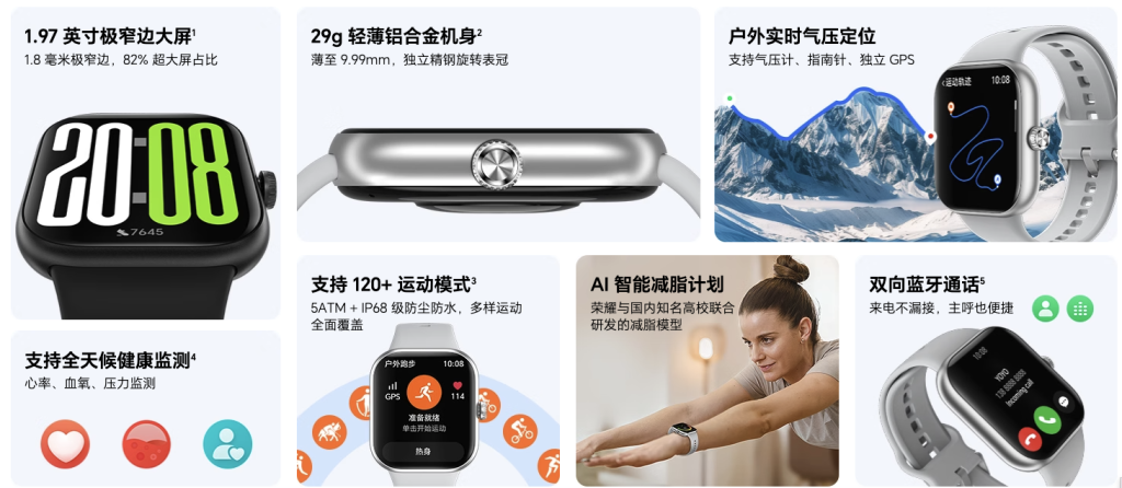 Uutena ominaisuutena Honor tuo AI-pohjaisen “Smart Fat Reduction” -ohjelman, joka hyödyntää yhteistyössä kiinalaisten yliopistojen kanssa kehitettyä algoritmia auttaakseen käyttäjiä saavuttamaan painonhallintatavoitteensa tieteellisesti ja turvallisesti.