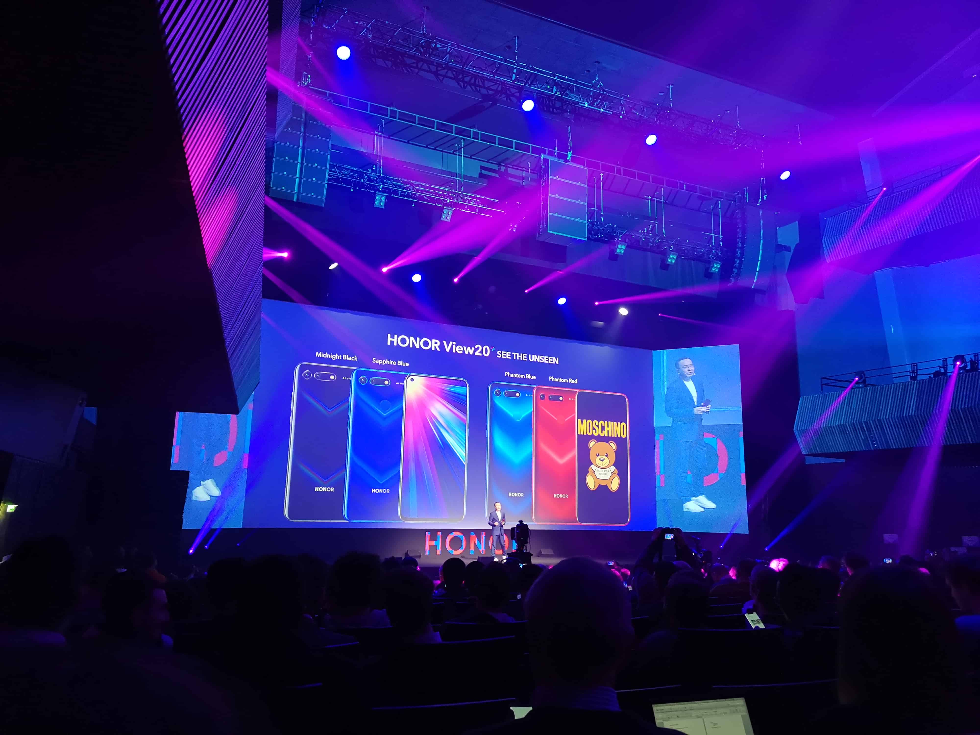Moschinon kanssa yhteistyössä suunniteltujen Honor View20 -puhelimien värit ovat nimeltään Phantom Blue ja Phantom Red. Erikoisvärien lisäksi puhelin on saatavana kahdessa perusvärissä, jotka ovat Midnight Black ja Sapphire Blue.