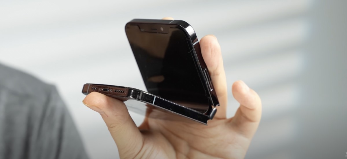 Mutoilultaan puhelin muistuttaa Samsung Galaxy Z Flippiä ja Motorolan taittuvanäyttöistä Razr-puhelinta. Puhelin on siis ikään kuin simpukkamallinen, jossa näyttö taittuu ylöspäin auki tarjoten ainoastaan yhden suuren näytön. Puhelimessa on säilytetty iPhone X -puhelimen näyttölovi. Projektissa kerrotaan käytettäneen jopa 37 iPhone X -puhelimen näyttöä, ennenkuin valmiiksi saatiin yksi toimiva versio.